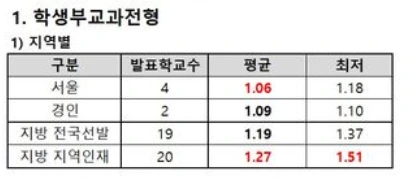 종로학원이 발표한 2023학년도 학생부교과전형 지방의대 입시결과에 따르면, 전국선발의 합격자 평균 내신이 1.19, 지역인재가 1.27 임을 알 수 있다.