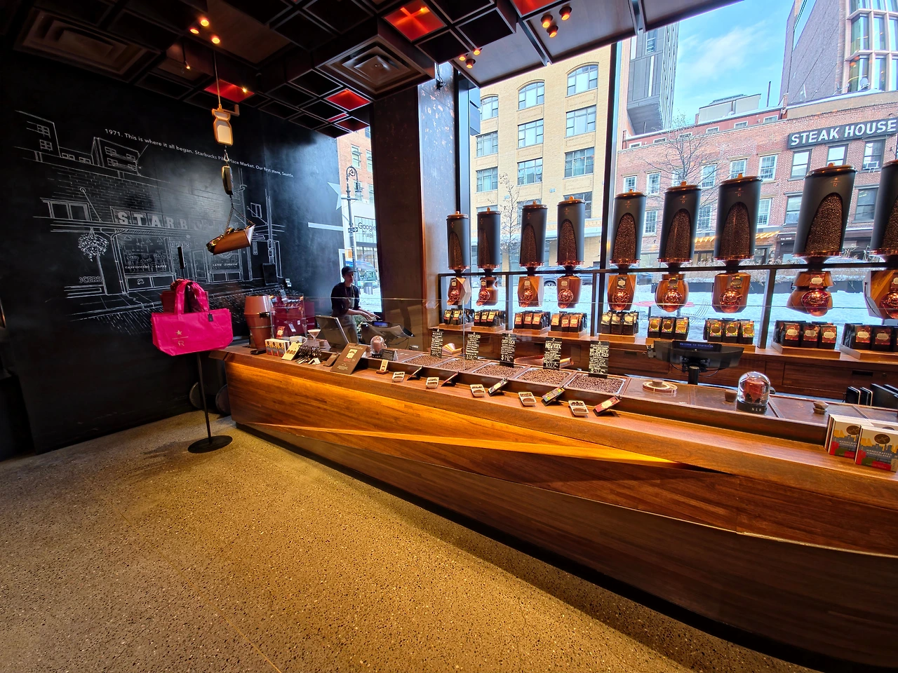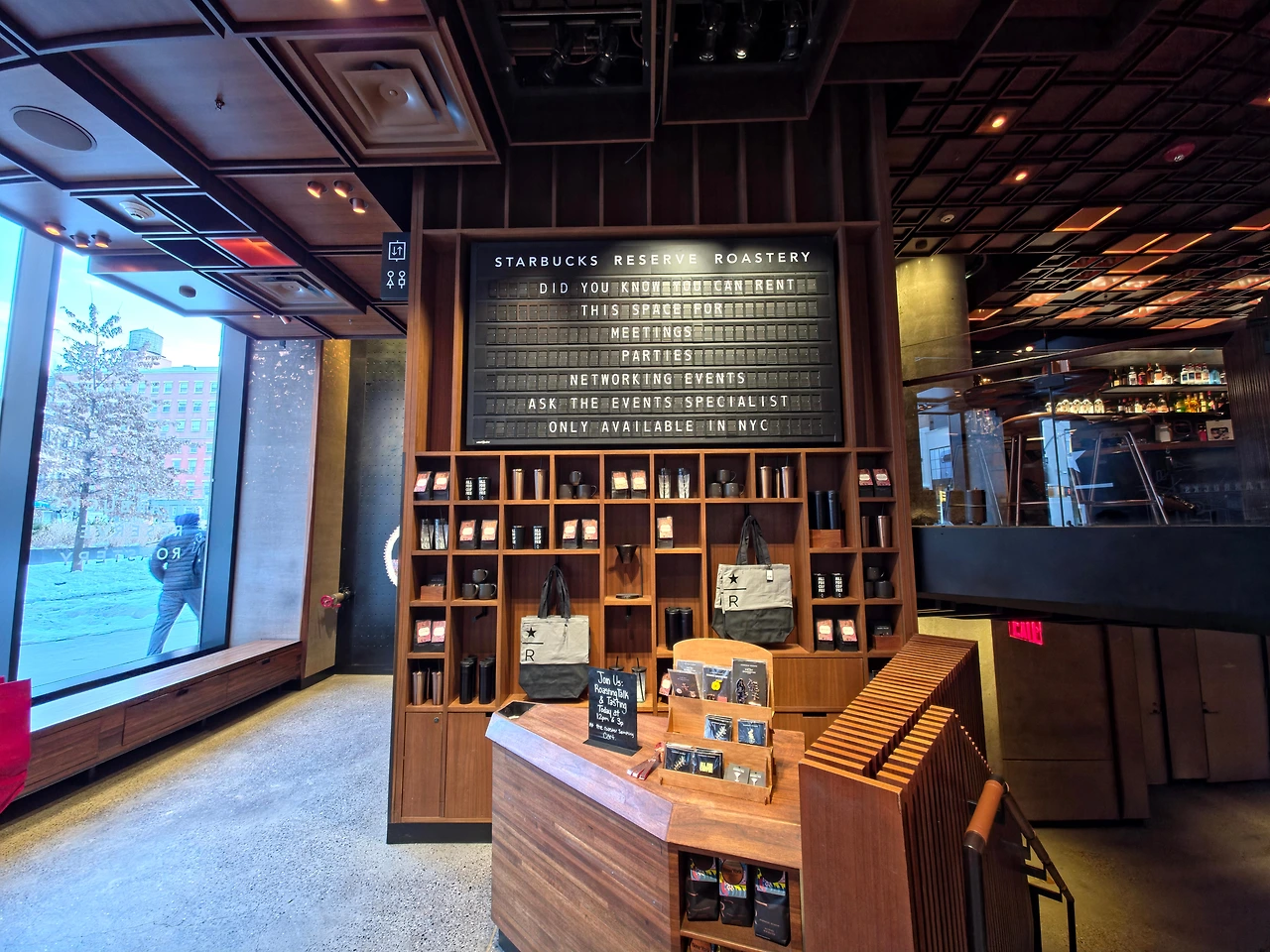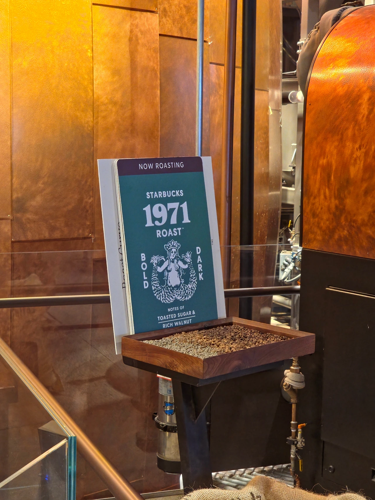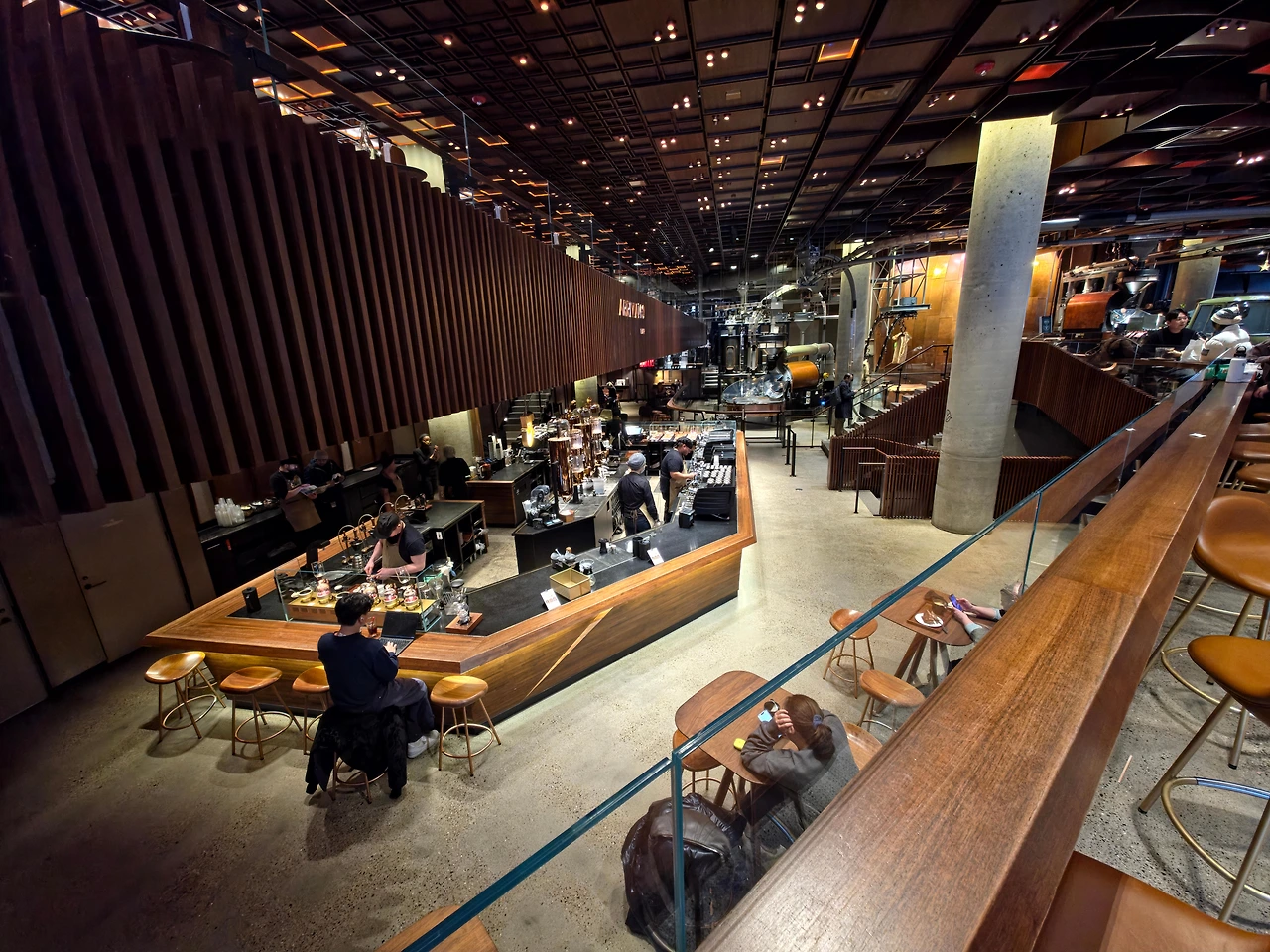 스타벅스 로스터리 안으로 들어갔다. 사실 도쿄에 있는 로스터리도 한번 가봤어서 그런가 막 엄청 신기하지는 않았다. 엄청큰 스타벅스 매장 느낌이었고 굿즈가 다양하게 많이 있었다. 나중에 알았지만 다른 어떠한 스벅 매장보다도 이 매장 직원들이 가장 친절했다. 다른 스벅은 가면 띠꺼운 표정은 기본이요 엄청 딱딱한 느낌이 강했다 (너무 한국식 서비스에 익숙해서 미국 직원들이 다소 무뚝뚝해 보이는것이 아닐까 생각해봤다) 한쪽에 로스팅 머신이 돌아가고 있었는데 커피향이 정말 꼬소하고 좋았다. 여기는 신기하게 바? 가 있었던것으로 기억한다 (다른날 또 와봐야지 하고 또 못옴 ㅜㅜ)