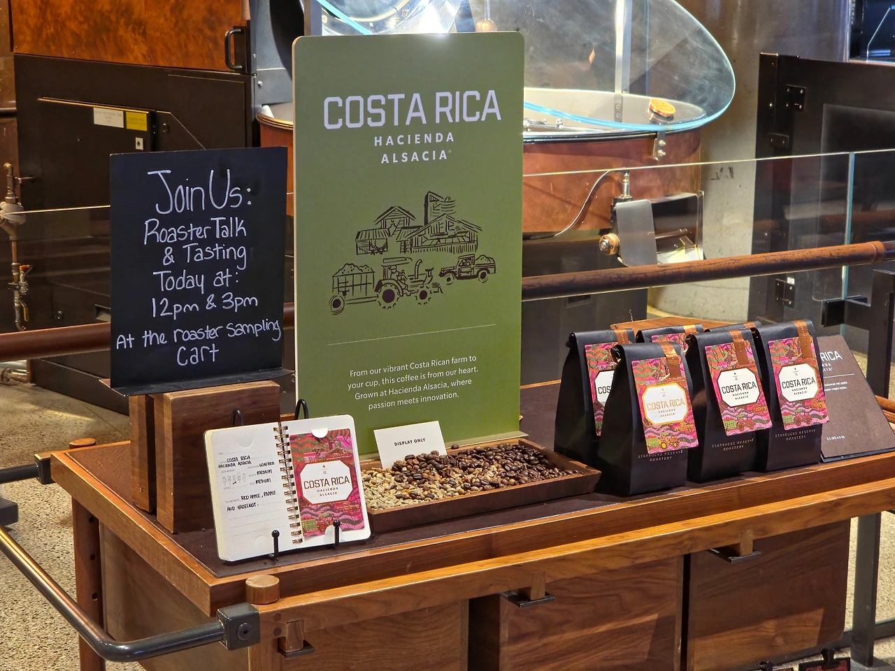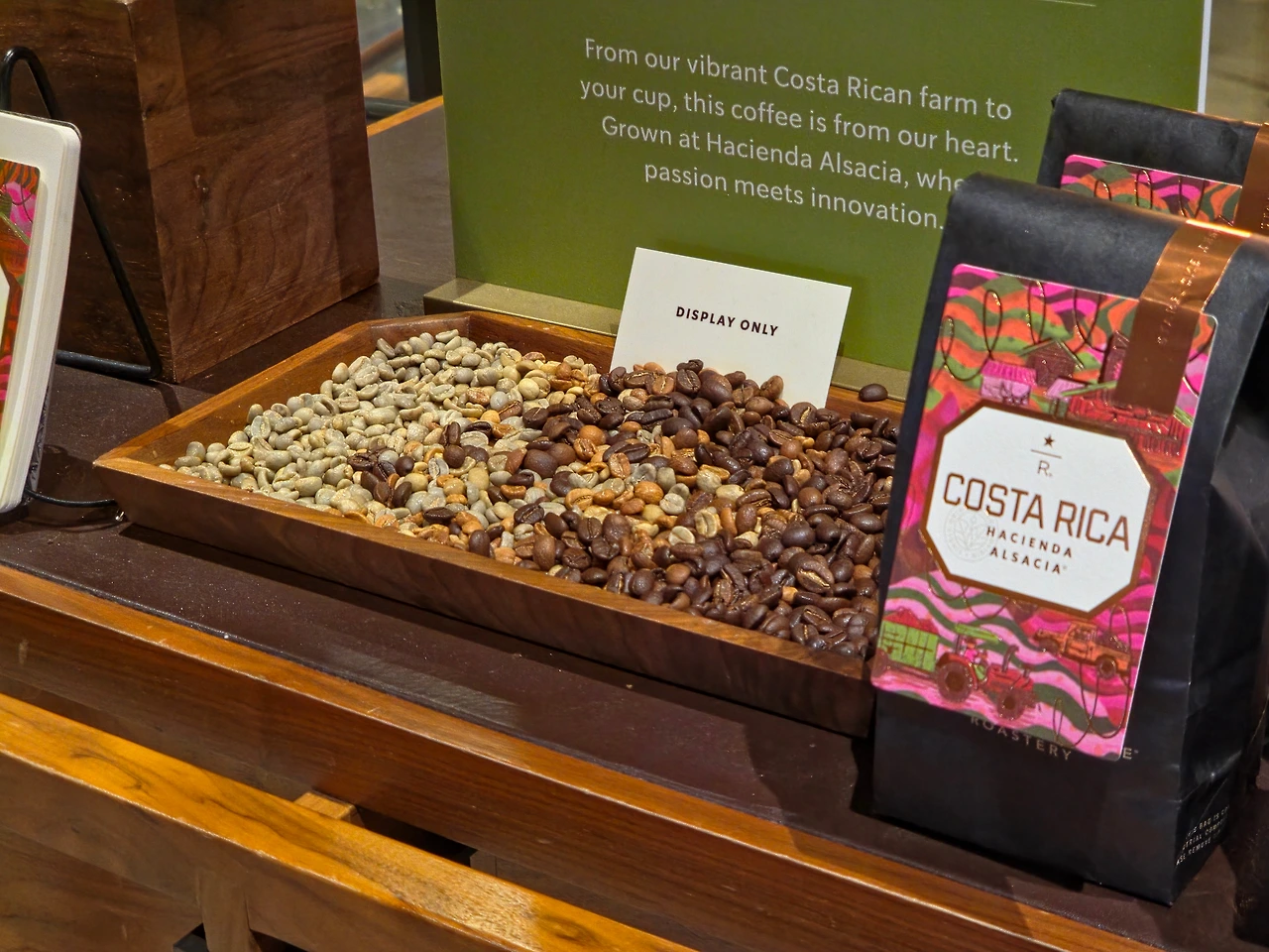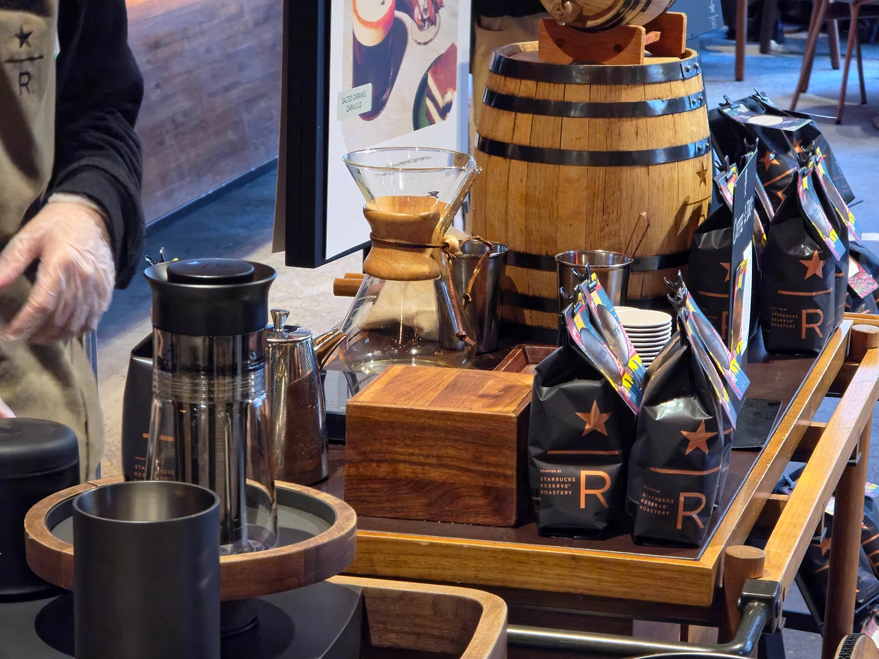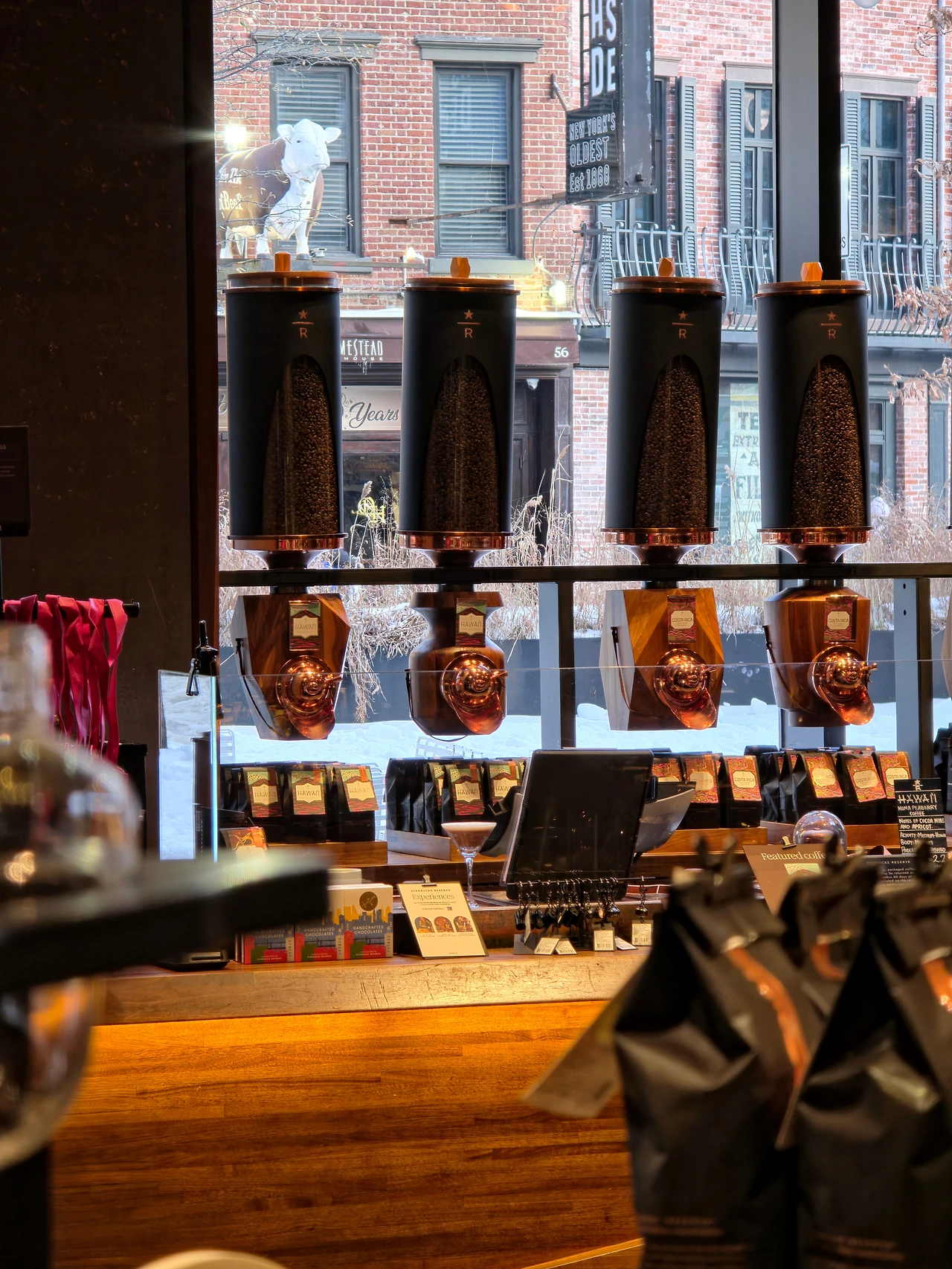 스타벅스 로스터리 안으로 들어갔다. 사실 도쿄에 있는 로스터리도 한번 가봤어서 그런가 막 엄청 신기하지는 않았다. 엄청큰 스타벅스 매장 느낌이었고 굿즈가 다양하게 많이 있었다. 나중에 알았지만 다른 어떠한 스벅 매장보다도 이 매장 직원들이 가장 친절했다. 다른 스벅은 가면 띠꺼운 표정은 기본이요 엄청 딱딱한 느낌이 강했다 (너무 한국식 서비스에 익숙해서 미국 직원들이 다소 무뚝뚝해 보이는것이 아닐까 생각해봤다) 한쪽에 로스팅 머신이 돌아가고 있었는데 커피향이 정말 꼬소하고 좋았다. 여기는 신기하게 바? 가 있었던것으로 기억한다 (다른날 또 와봐야지 하고 또 못옴 ㅜㅜ)