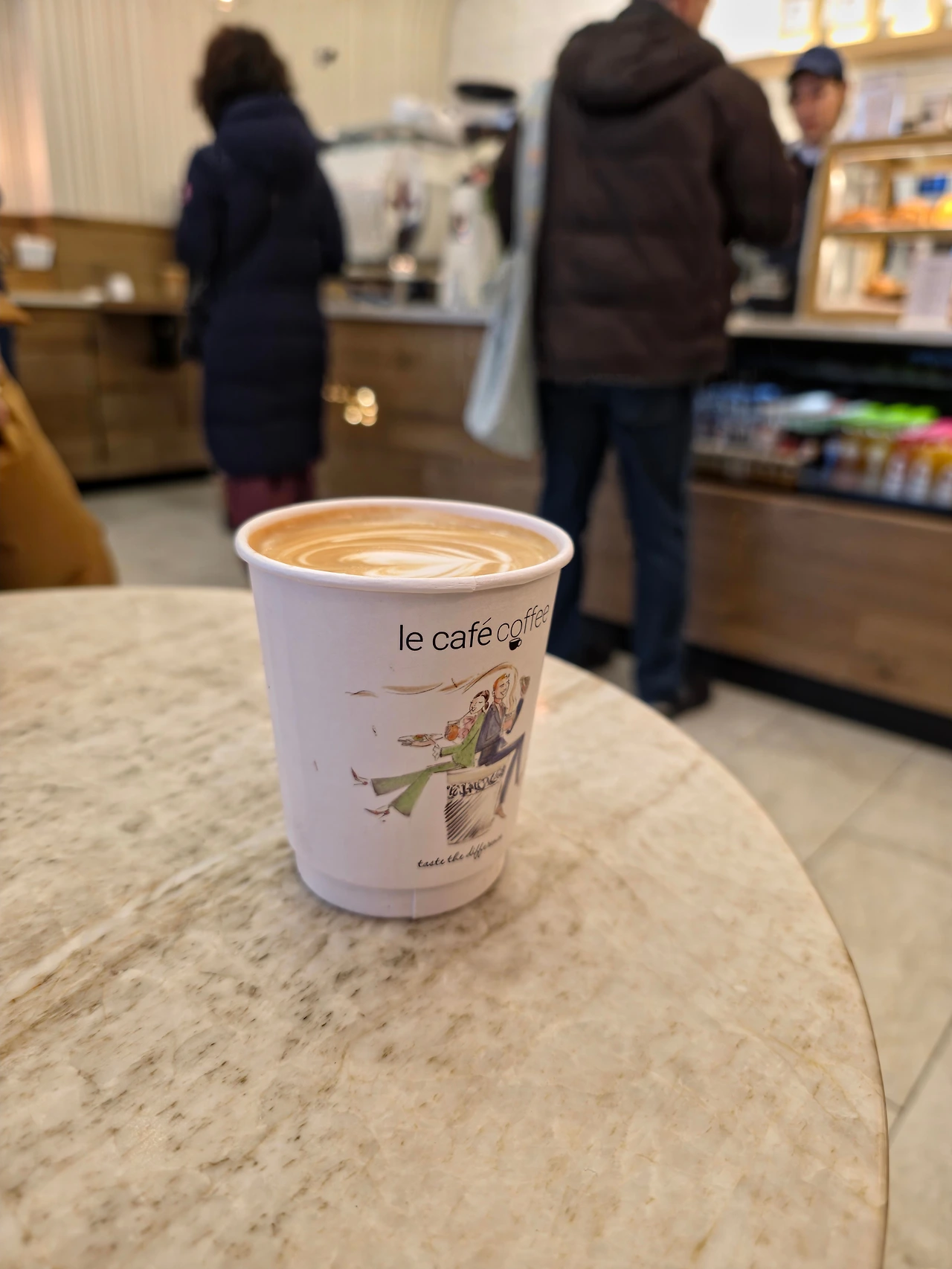 오늘 아침 카페는 르카페 라는곳을 갔다. 오늘은 따뜻한 라떼를 주문 했는데 우유거품이 너무 부드러워서 너무 맛있었다. 뉴욕은 커피 맛도 정말 다르다는걸 느꼈는데 이게 여행을 와서 더 그렇게 느꼈던건지 모르겠지만 일단 너무 맛있었다는건 확실했다. 평일이라 확실히 직장인들이 많이 보였는데 남들 일할때 노니까 더 신났던것 같다!