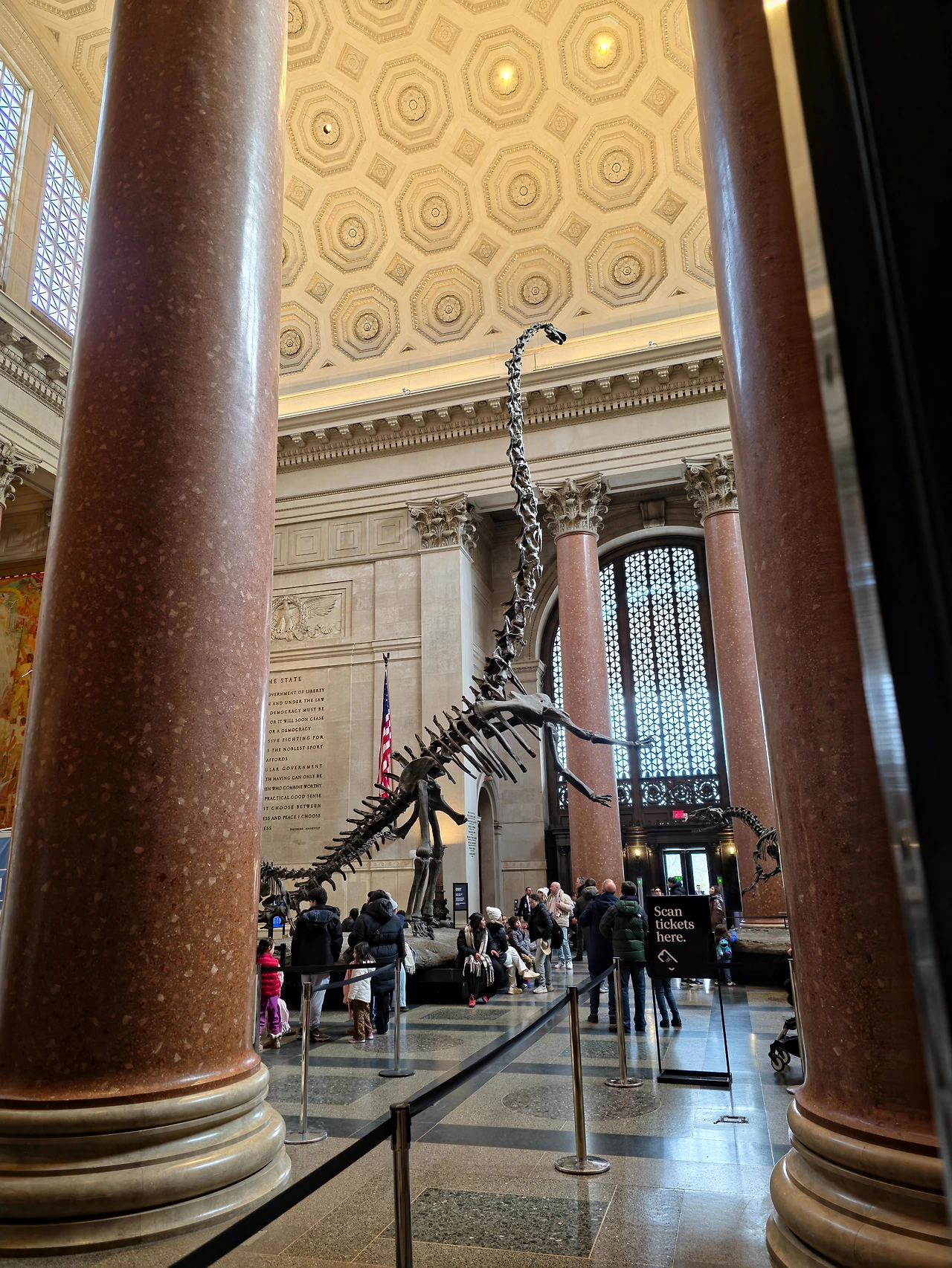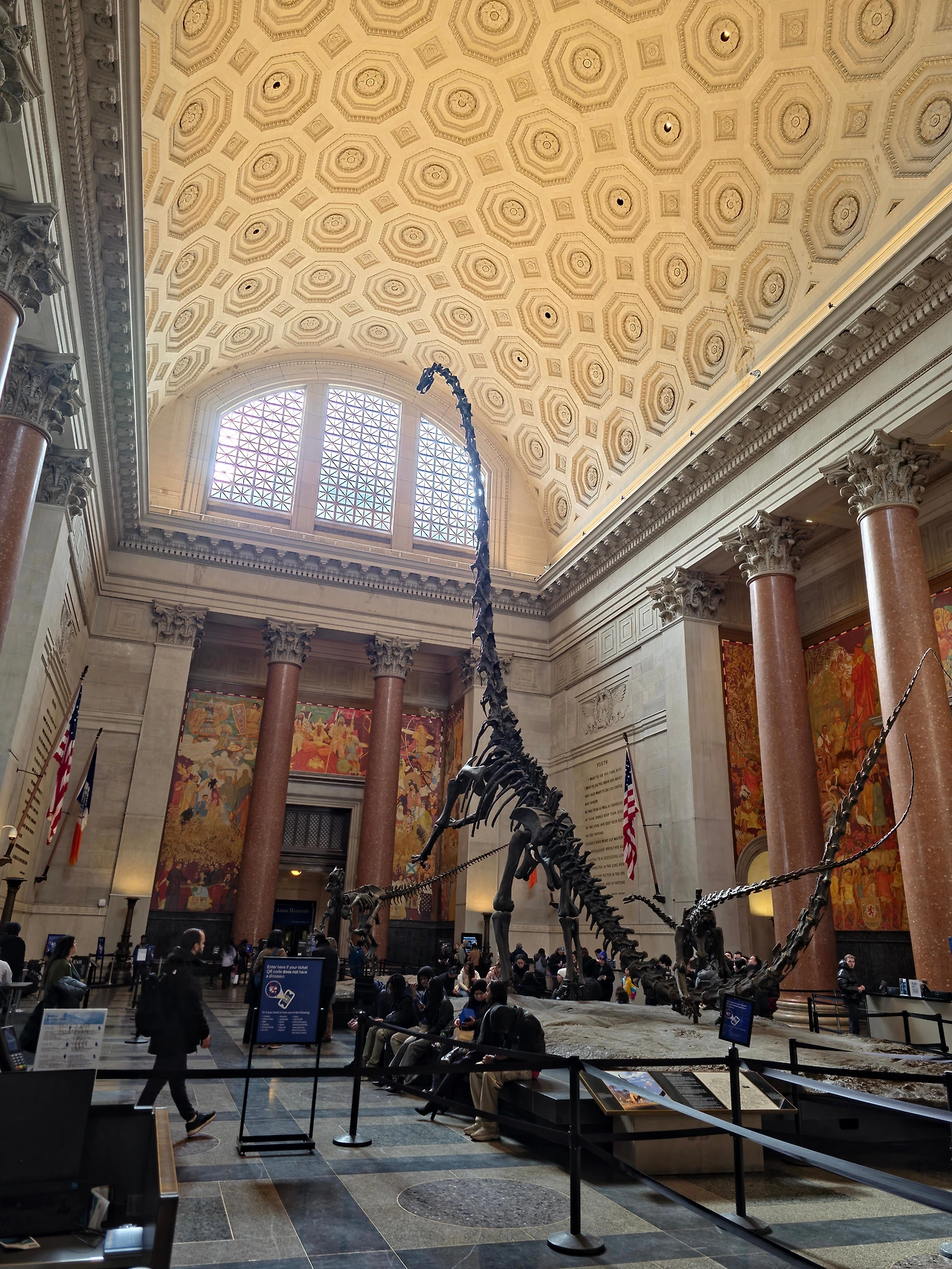드디어 들어간 자연사 박물관. 사실 여기는 공룡뼈만 봐도 본전 이라고 생각하며 발걸음을 옮겼다 (이미 여기까지 가는데 오랜 시간이 걸려서 그런가 피곤한 상태로 관람을 시작했다) 박물관 전체를 다 구경하기에는 너무 방대하기 때문에 전략적으로 공룡부터 보기로 했다(하지만 결국 거의 공룡만 보고 나옴) 거대한 뼈들이 보이는 순간 입이 떡 벌어져서 말이 안나왔다. '허어어억' 이게 다였다. 공룡 뼈들을 보고 마치 어린애가 된마냥 설레고 즐거웠다. 어릴때 티비에서 만 보던 공룡들이 이 박물관에 실제 크기로 늠름하게 서 있는데 이제서야 그 크기가 몸소 와닿았다. 왜 과거에 공룡을 발굴 했을때 지구의 생명체 라는것을 믿기지 않아 했는지 알것 같았다. 내눈으로 보고도 이거 가짜 아니야? 라고 생각할 정도였으니. 거의 세시간에 가깝게 둘러보고 숙소로 복귀 하기 위해 또 먼 여정을 떠났다.