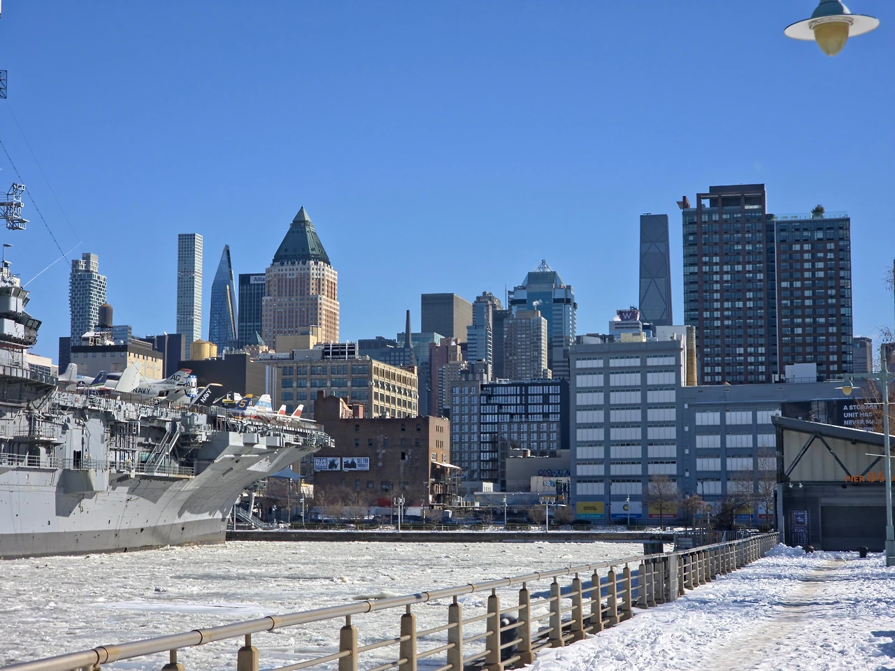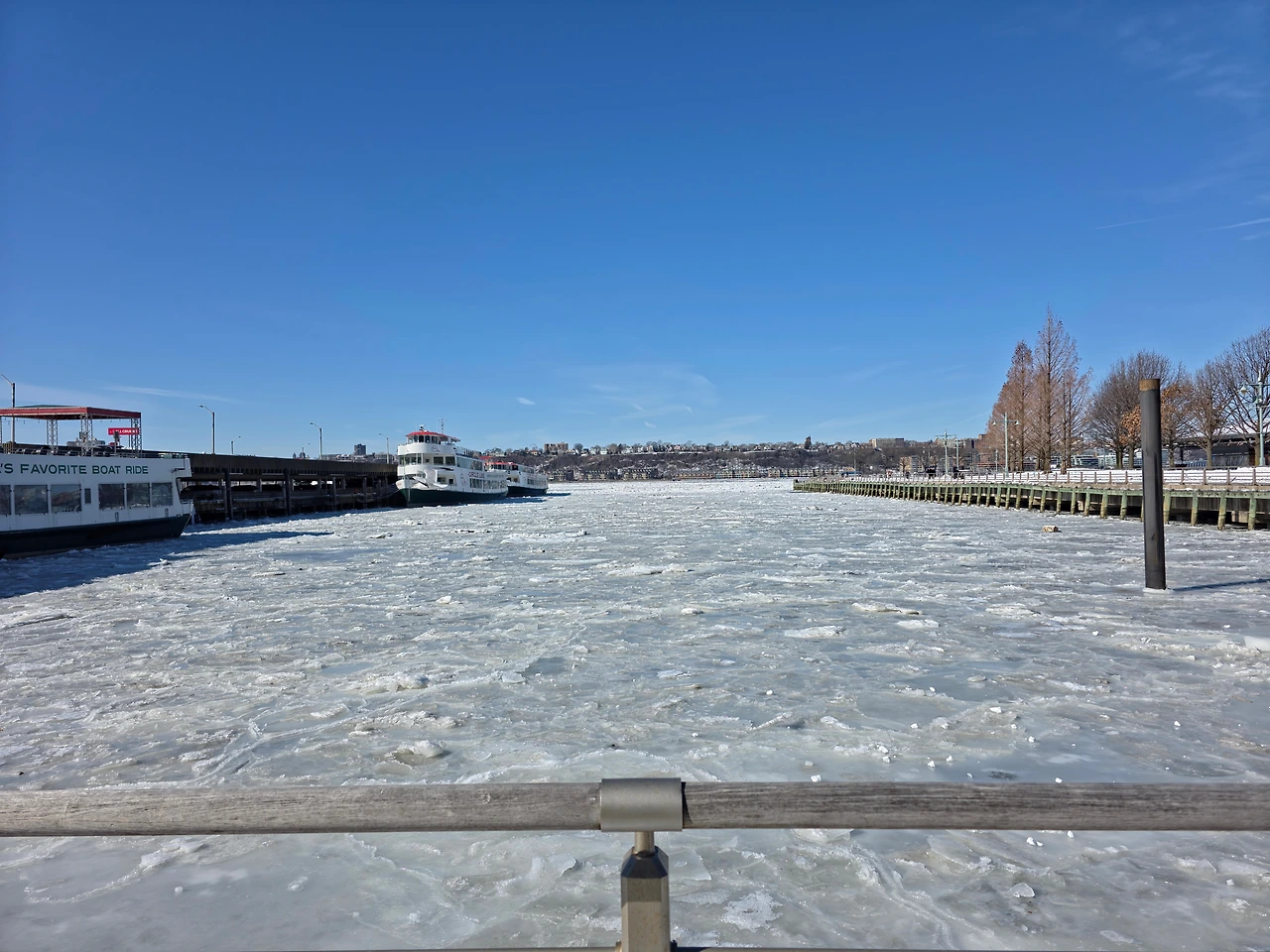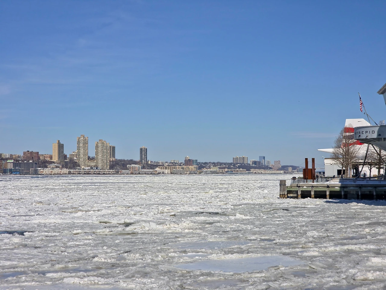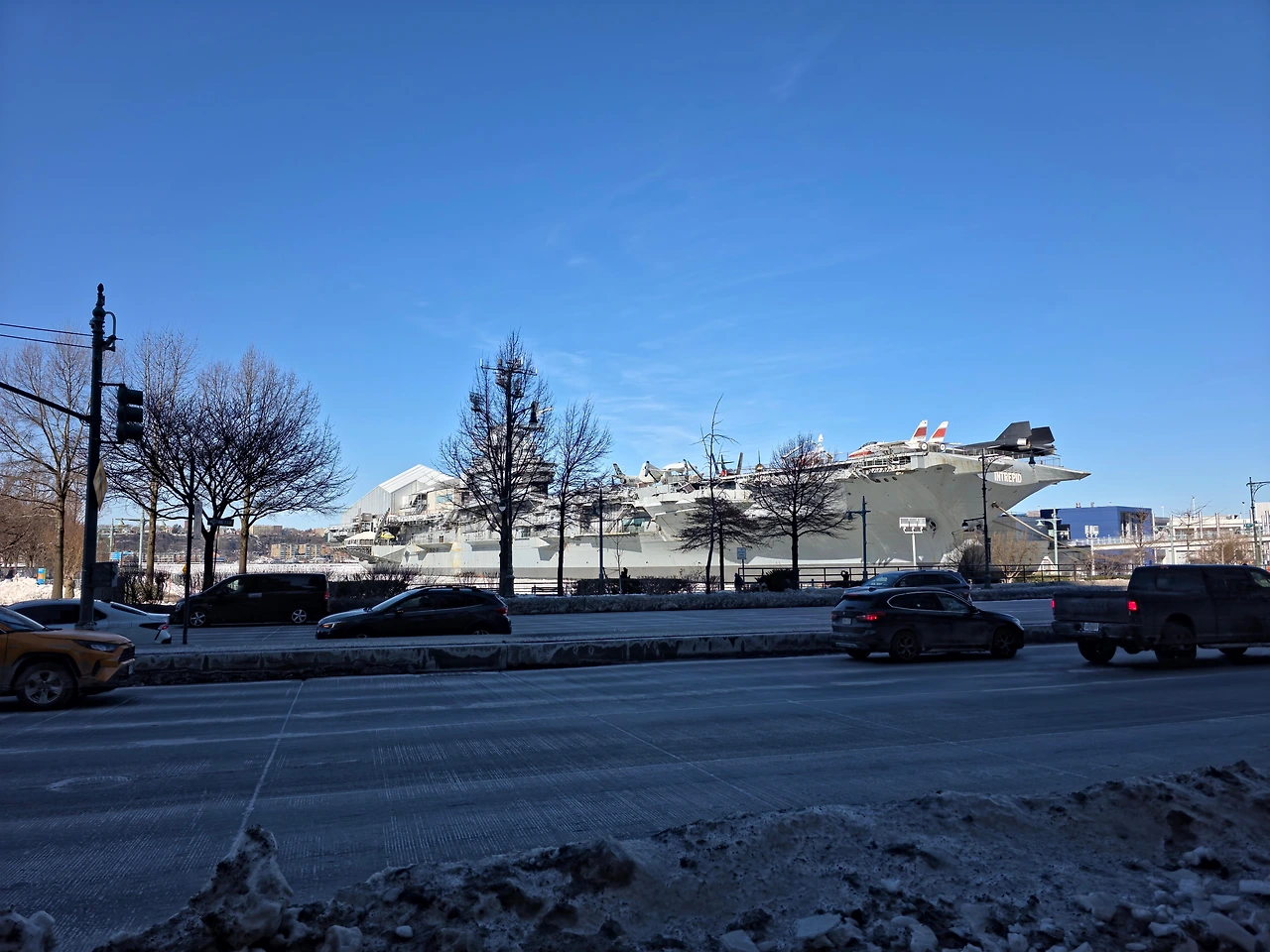 이날따라 날도 좋아서 빛도 이쁘고 추우면서 따뜻하기도했다. 꽁꽁 얼어붙은 허드슨 강을 보니 정말 장관이다 라는 생각이 들었다. 한강도 저렇게까지 얼어 붙은 모습을 본적이 없는데 이렇게 강 전체가 다 얼어붙다니 진짜 신기했다. 한참 허드슨 강을 구경하다보니 어느새 시간이 많이 흘러서 바로 인트리피드로 가기로 했다. 인트리피드는 피어84 바로 옆에 있었기 때문에 금방 갈 수 있었다.