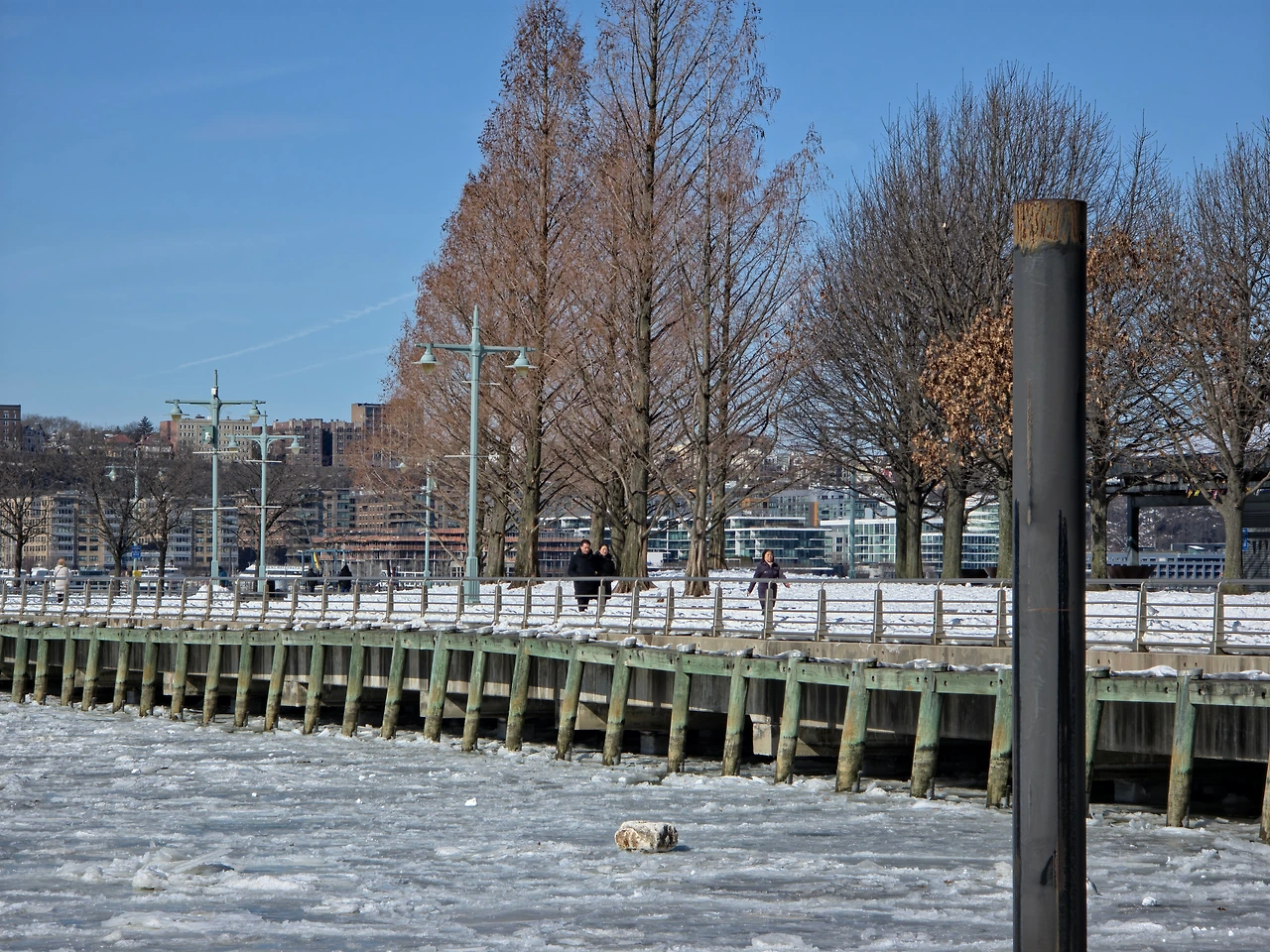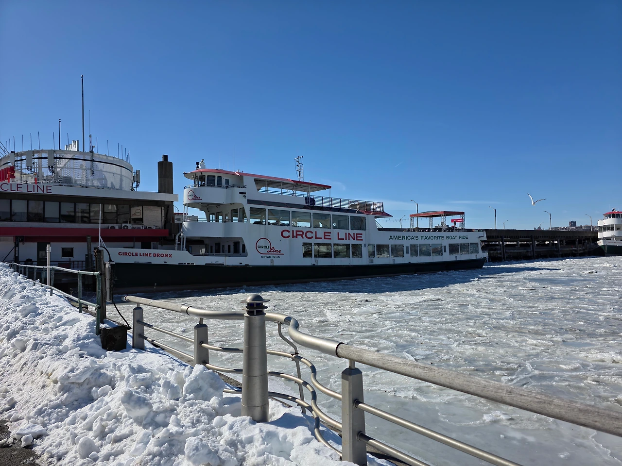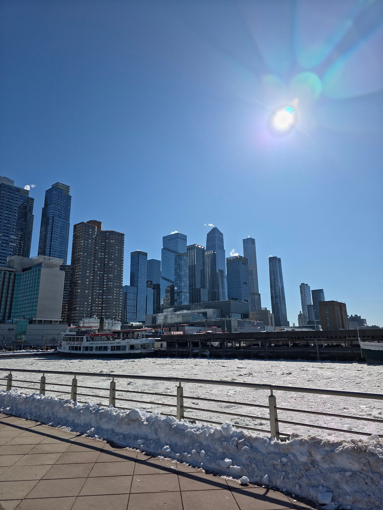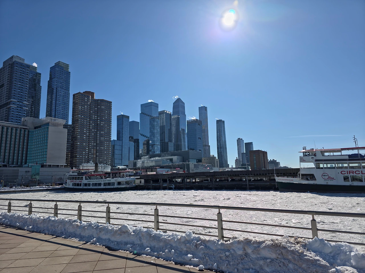 이날따라 날도 좋아서 빛도 이쁘고 추우면서 따뜻하기도했다. 꽁꽁 얼어붙은 허드슨 강을 보니 정말 장관이다 라는 생각이 들었다. 한강도 저렇게까지 얼어 붙은 모습을 본적이 없는데 이렇게 강 전체가 다 얼어붙다니 진짜 신기했다. 한참 허드슨 강을 구경하다보니 어느새 시간이 많이 흘러서 바로 인트리피드로 가기로 했다. 인트리피드는 피어84 바로 옆에 있었기 때문에 금방 갈 수 있었다.