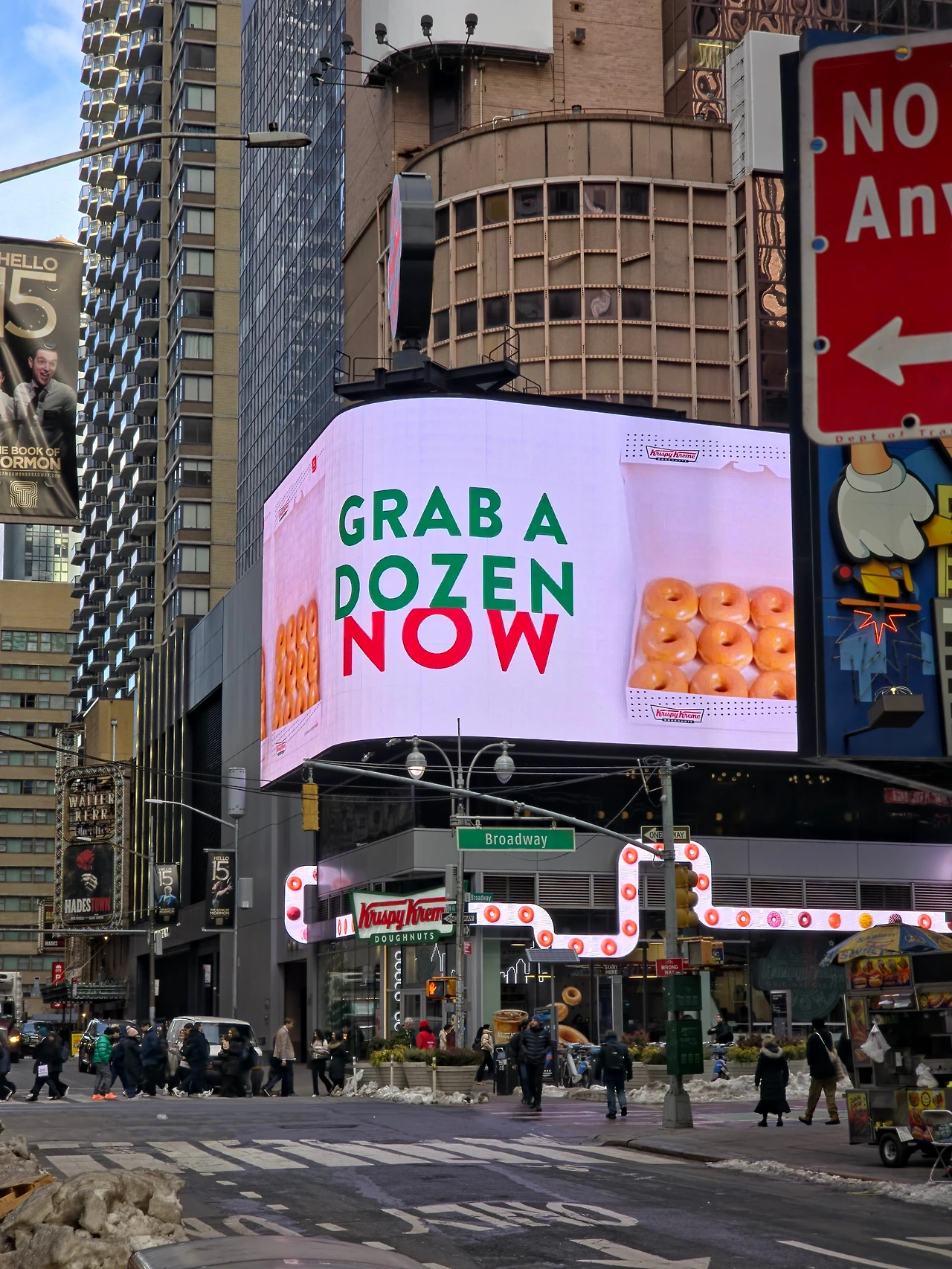 숙소로 돌아가는길에 크리스피를 발견했다. 타임스퀘어 바로 옆쪽길에 있었는데 돌아다니면서 그동안 발견하지 못하다가 우연히 보게 되었다. 뉴욕의 크리스피는 어떤맛인가 궁금해서 오리지날 글레이즈드 두개를 테이크 아웃했다. 숙소에 돌아와서 먹어보니 우리나라에서 파는것과 크게 다르진 않지만 훨씬 맛이 달달하고 쫄깃했던것 같다.
