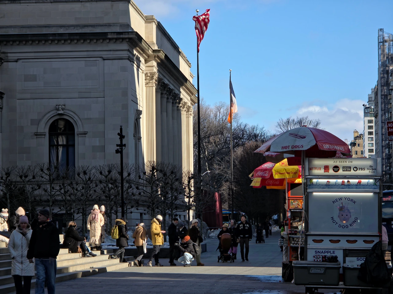 짠! 그래도 메트로폴리탄 미술관에 잘 도착했다. 볕이 좋아서 그런가 유독 건물이 더 이뻐보였다. 신기한건 여기 오자마자 바람이 엄청 불었다는건데 너무 찬 바람이 세게 불어서 얼굴과 손이 다 얼어 붙었다. 우리는 저 사진 가운데 보이는 계단쪽에 줄을 섰다.