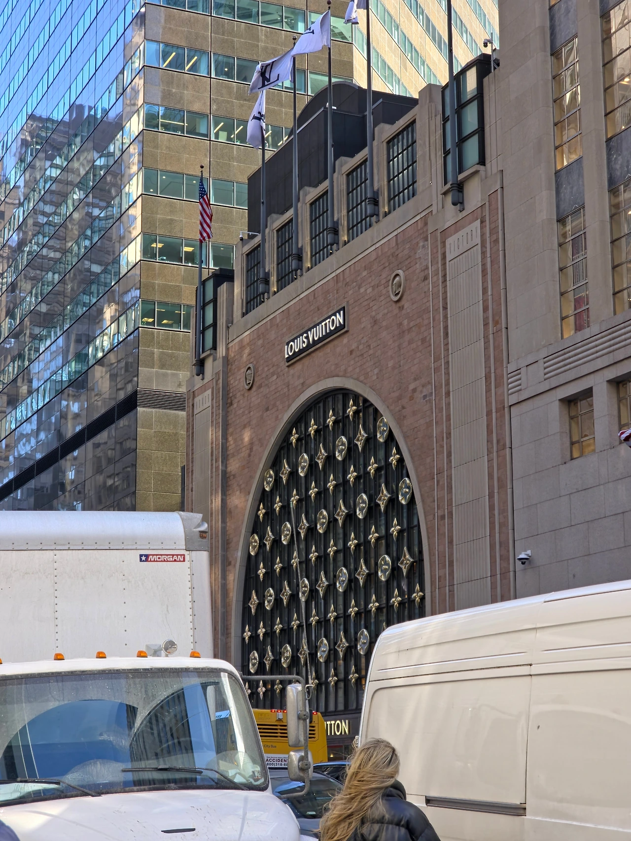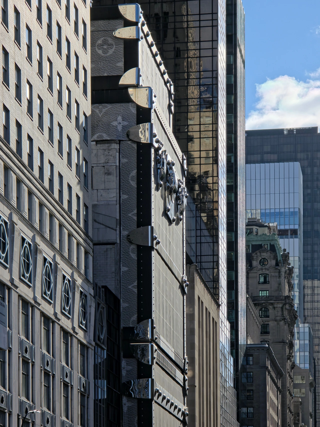 밑으로 좀 더 내려가니 신기한 모습의 건물이 보였다. 가까이 가니 익숙한 브랜드가 눈에 띄었다. 루이비통 건물이었는데 진짜 특이했다. 여기가 명품 브랜드가 많은 거리 같았다. 애플스토어도 있고 프라다 등등 다른 명품도 많이 있었다. 뉴욕은 거리마다 분위기가 너무 달라서 그런가 볼거리가 많아서 걸어다니는 재미가 있었다(다리와 발은 이미 망했다)
