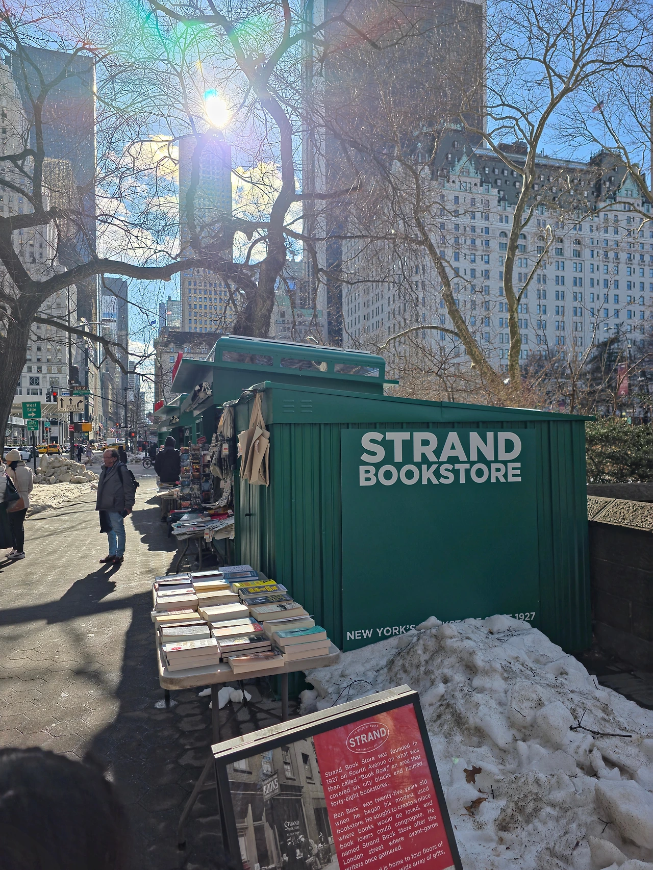 아내가 ‘스트랜드’라는 유명한 뉴욕 서점이 있대서 중간에 들르기로 했다(100년 전부터 존재한 서점 이라고 하더라) 여기는 스트랜드 팝업스토어 같은 곳이었는데 메트로폴리탄 미술관에서 아래로 쭈욱 내려오면 있는 곳이었다. 길거리에 있는 작은 서점이지만 다양한 책을 볼 수 있었다. 짐이 무겁지만 않으면 여기서 사진첩 같은걸 사가고 싶었다 (캐리어가 무지막지하게 무거워서 포기) 굿즈들이 이쁘고 사고싶은것들이 많았는데 역시 물가의 도시라서 그런가 좀 비싸게 느껴졌다 (당시 환율 1,460원)