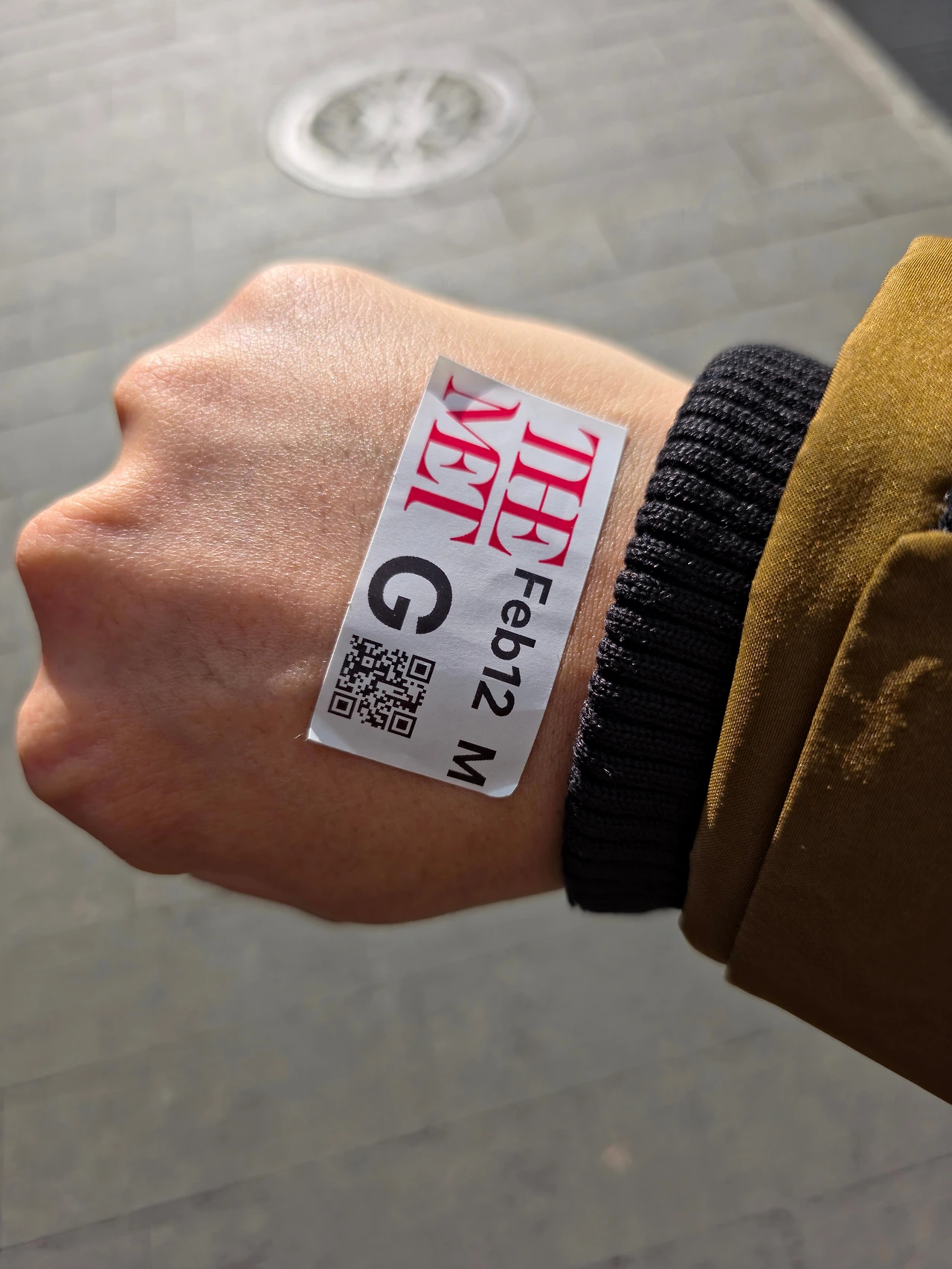 메트로폴리탄 미술관은 이렇게 스티커를 줬는데 이걸 잘 붙이고 다니라고 했다. 이 스티커가 없으면 미술관에 돌아다닐 수 없다고 해서 잘 안떨어지게 아예 손에다가 붙여버렸다 (처음에 옷에 붙였었는데 잘 떨어짐)