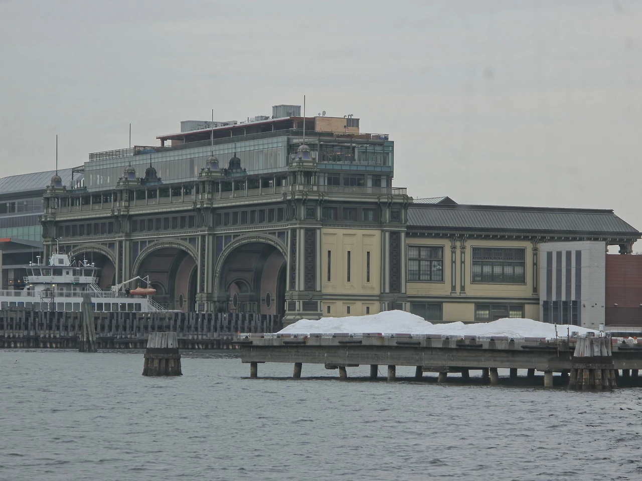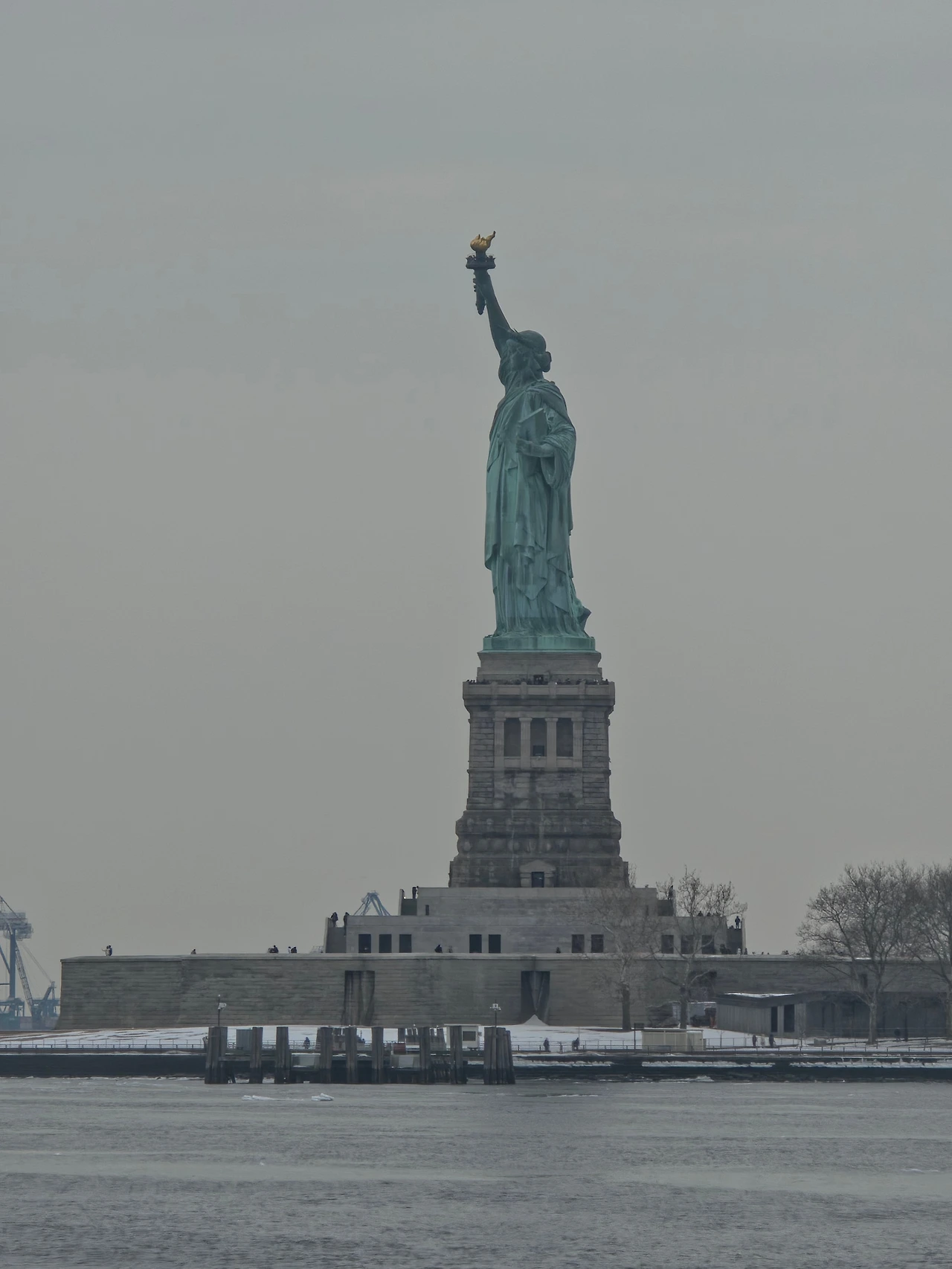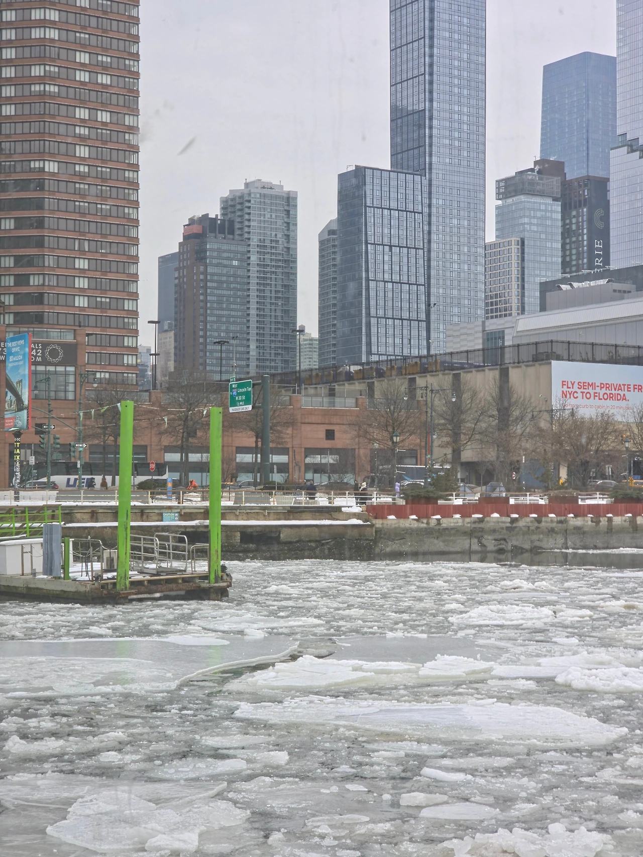 이제 자유의 여신상 페리를 타러 갈 시간이 되었다. 예전에 인트리피드 항공모함 박물관이 있는 항구에서 페리를 탈 수 있었다. 대부분 사람들은 남쪽에 있는 항구에서 많이 타던데 우리는 최대한 숙소에서 가까운데를 가자! 라는게 목표였다. 처음 뉴욕에 왔을때는 강이 얼어붙어서 페리운영을 하지 않았는데 여행 막바지가 되니 다행히 페리가 운영을 하기 시작했다. 여전히 강물은 얼어붙어 있었지만 페리에 탑승시켜주길래 뭐 괜찮겠지 하며 일단 몸을 실었다.
