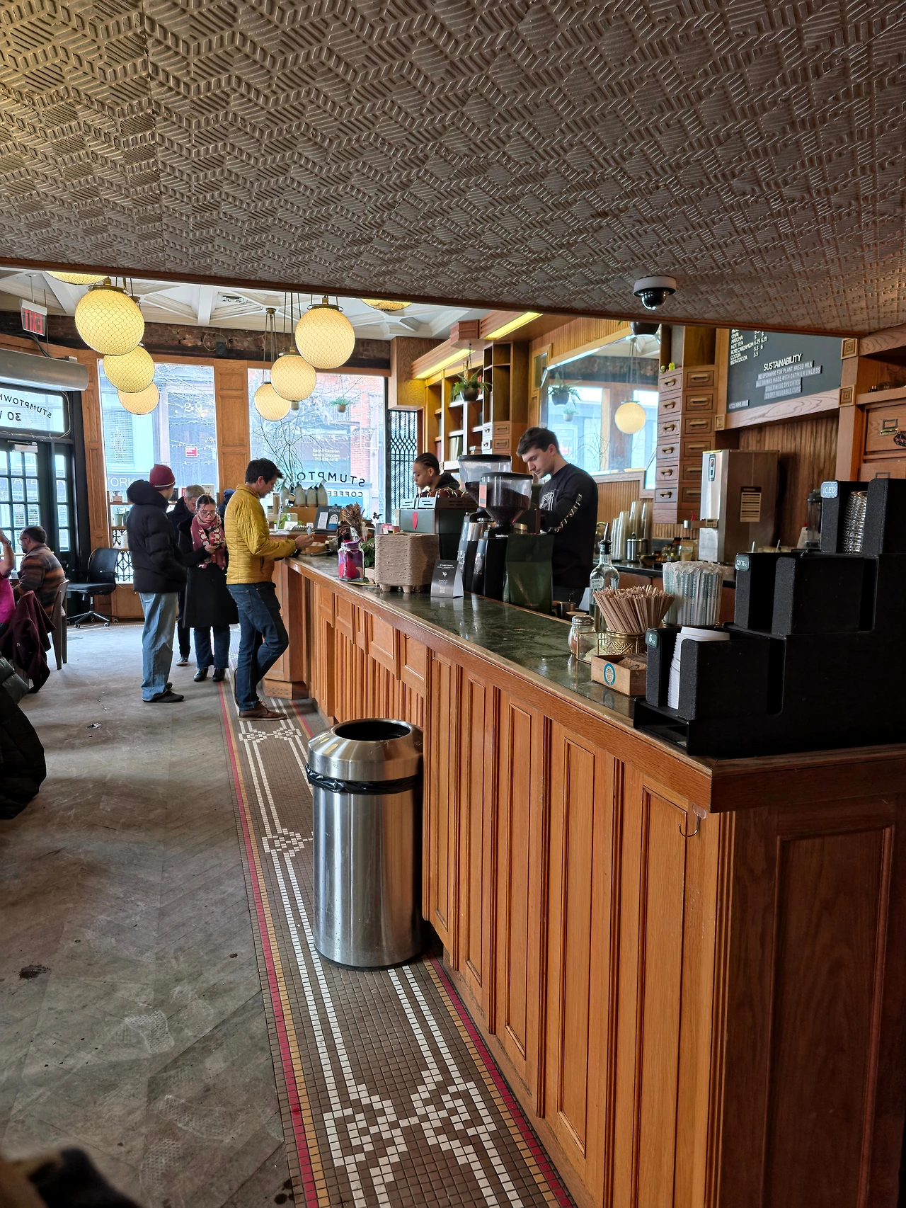 스텀프타운 커피 로스터스 라는 곳을 왔다. 여기는 조금 더 뉴욕 남쪽 지역에 있는 카페였는데 내부 분위기도 너무 좋고 라떼 맛도 좋았다. 여기는 살짝 스타벅스 느낌이 나는것 같았는데 입구에 경비도 있고 다양한 굿즈가 있는것을 보니 조금 규모감이 있는 브랜드 인것 같았다. 여기서 텀블러 두개를 사왔다.