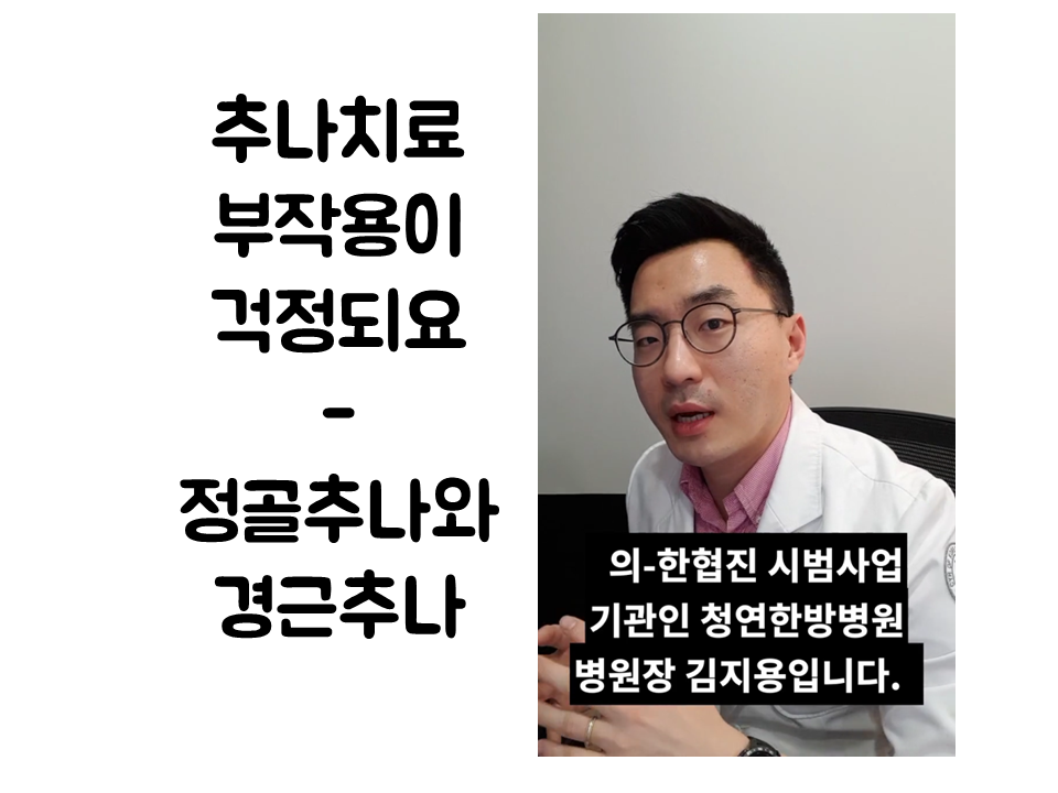 p.s 추나를 받고 뇌졸중이나 신경손상이 발생했다는 말도 안되는 비난을 하고 있는 임솔 기자의 메디게이트 자극적인 제목을 보고 너무나 화가 납니다. 현재 추나는 건강보험 적용을 받고 있는데, 그 과정에서 치료 효용성과 안정성에 대한 연구를 충분히 진행하여 보건복지부의 허가를 받은 치료입니다. 저희 병원에서도 그들이 말하는 말도 안되는 뇌졸중 등의 부작용 건수는 0건 발생하였습니다. 정말 어처구니가 없습니다