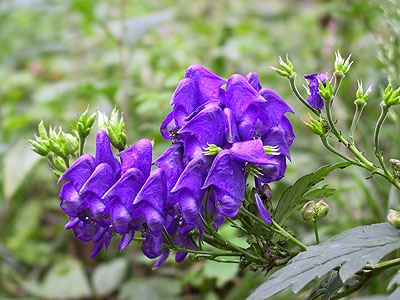 한국에서 자생하는 투구꽃. 중부와 남부에 자생하며 9월에 꽃이 핀다