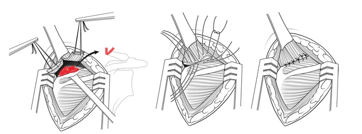 그러나 이런 모든 방법에도 통증과 염발음이 반응하지 않는다면 수술적 방법을 선택하게 됩니다. 수술적 방법의 경우 견갑골 상내측 각에 대한 압박을 제거하기 위해서 견갑거근을 잠시 잘라내고 견갑골 내측 상연을 를 제단한 뒤 다시 연결하는 방법을 취하게 됩니다. 수술 후에는 2~4주 정도면 수술 부위는 회복하고 스포츠에 회복하기에는 2~3달 정도가 걸립니다. 수술 후에는 견갑골 주변 근육에 대한 침치료, 물리치료, 재활 운동, 한약치료가 더해지면 회복속도를 빠르게 할 수 있습니다.