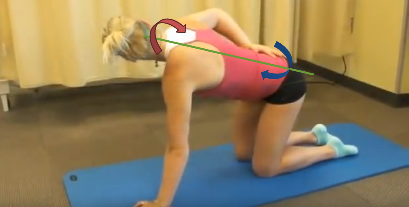 다음은 네발기기 자세로 넘어갑니다. 한쪽 팔은 지지하면서 버틸 정도로 근력이 있어야합다. 그리고 흉추가 회전되는 와중에서도 요추는 든든히 버틸 수 있도록 회전 안정성이 있어야합니다.