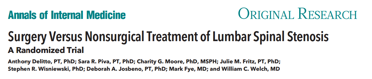 그런 이유로 비수술과 수술적 치료법에 대한 RCT 논문이 계속 발표되고 있는데요, Annals of Internal Medicine에 실린 Surgery Versus Nonsurgical Treatment of Lumbar Spinal Stenosis A Randomized Trial은 비수술적 치료법 역시 충분한 대안이 될 수 있음을 증명하는 논문입니다.