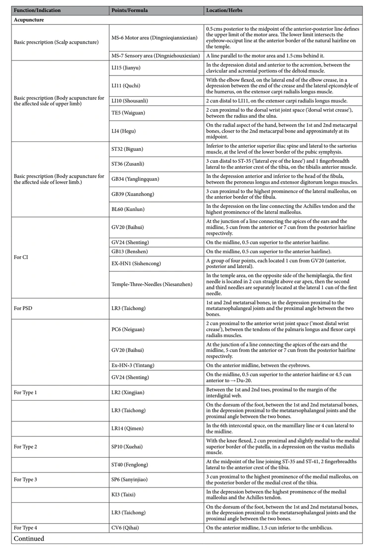 3) 그리고 만약 인지장애가 있는 경우에는 백회, 신정, 본신, 사신총혈과 같이 두부에 침치료를 받았습니다. 뇌졸중 후 우울증이 온 경우에는 태충혈자리가 추가되었습니다.