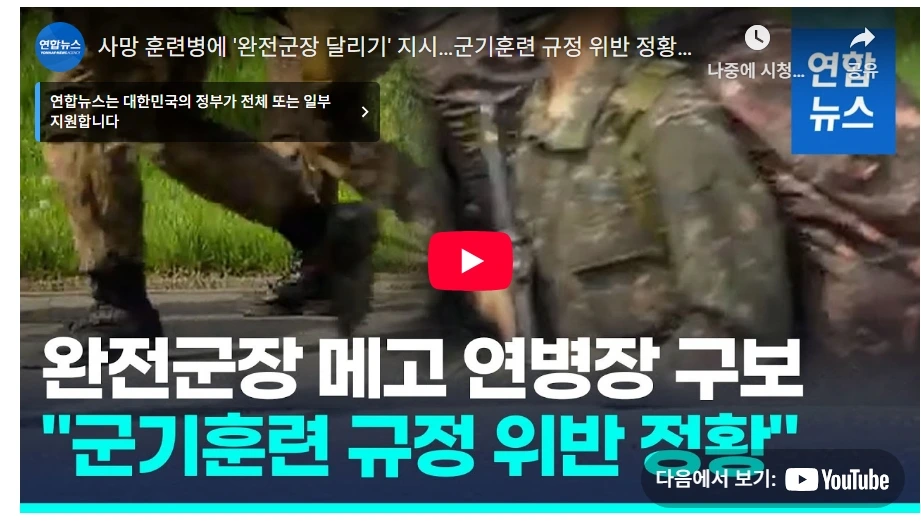 사망 훈련병에 '완전군장 달리기' 지시…군기훈련 규정 위반 정황(종합) | 연합뉴스