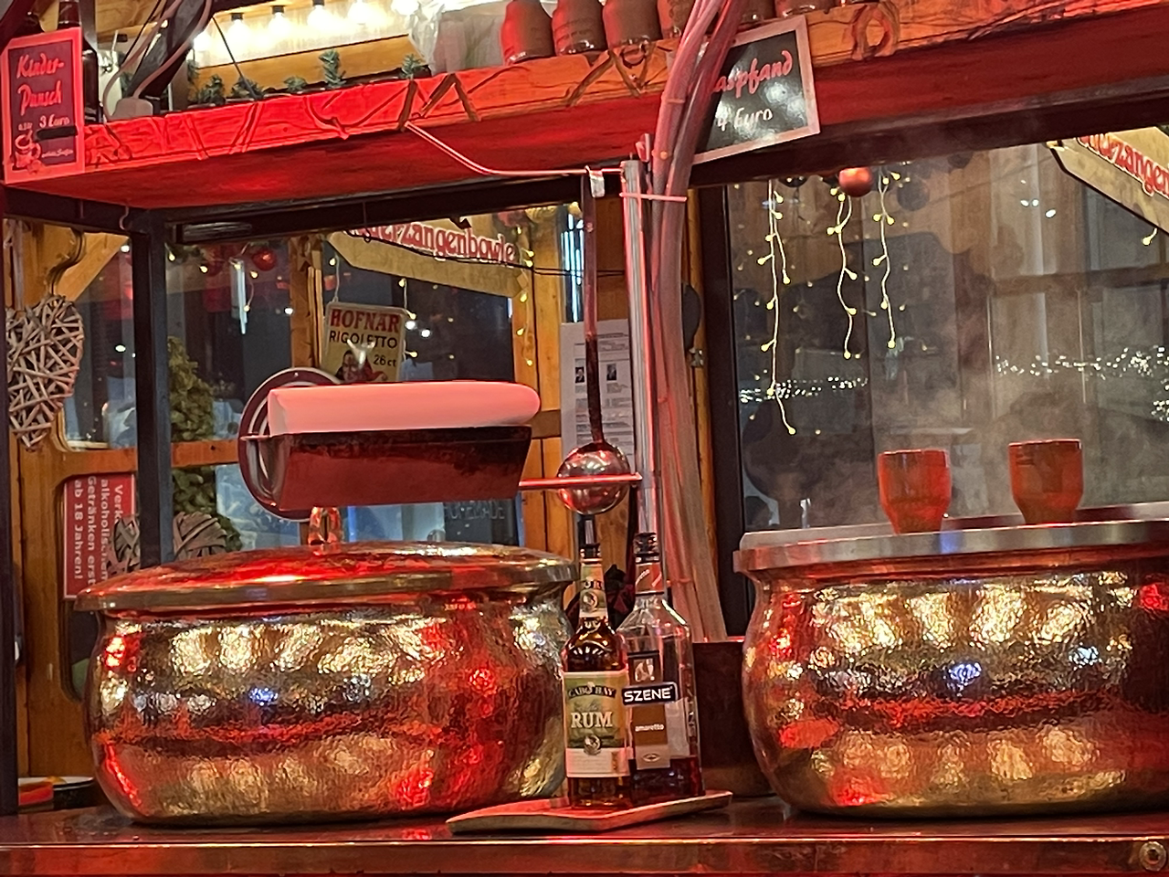 크리스마스 마켓에서의 음주는 대 놓고 술 먹으러 모이는 옥토버 페스트에 비해 로맨틱하고 경건하다. 배경 음악으로 쿵짝쿵짝 '마시고 한번 죽어보자'식의 슐라가(독일식 트로트) 음악이 아닌 캐럴이나 경쾌한 성가가 흐르고, 탕진하는 마음으로 마시는 술이라기보다는 한 해를 잘 살아낸 서로를 격려하고 주(酒)님이 오심을 축복하는 마음으로 마시기 때문이리라. 캄캄하고 추운 계절에 저마다의 이유로 밖으로 나온 타인들 틈에 끼어 온기를 느끼고자 따뜻한 술들을 홀짝홀짝 마시니 미친 듯이 마시고 꽐라 되자는 옥토버페스트보다는 사랑과 나눔의 정서가 강하게 느껴진다고나 할까? 무엇보다도 크리스마스 마켓의 음주가 매력적으로 느껴지는 이유는 따끈한 술에 포함되어 있는 강한 향신료와 추운 날씨에 맞는 관대한 알코올 함량일진텐데 대표적인 크리스마스 마켓의 주류를 차례로 소개해 보고자 한다.