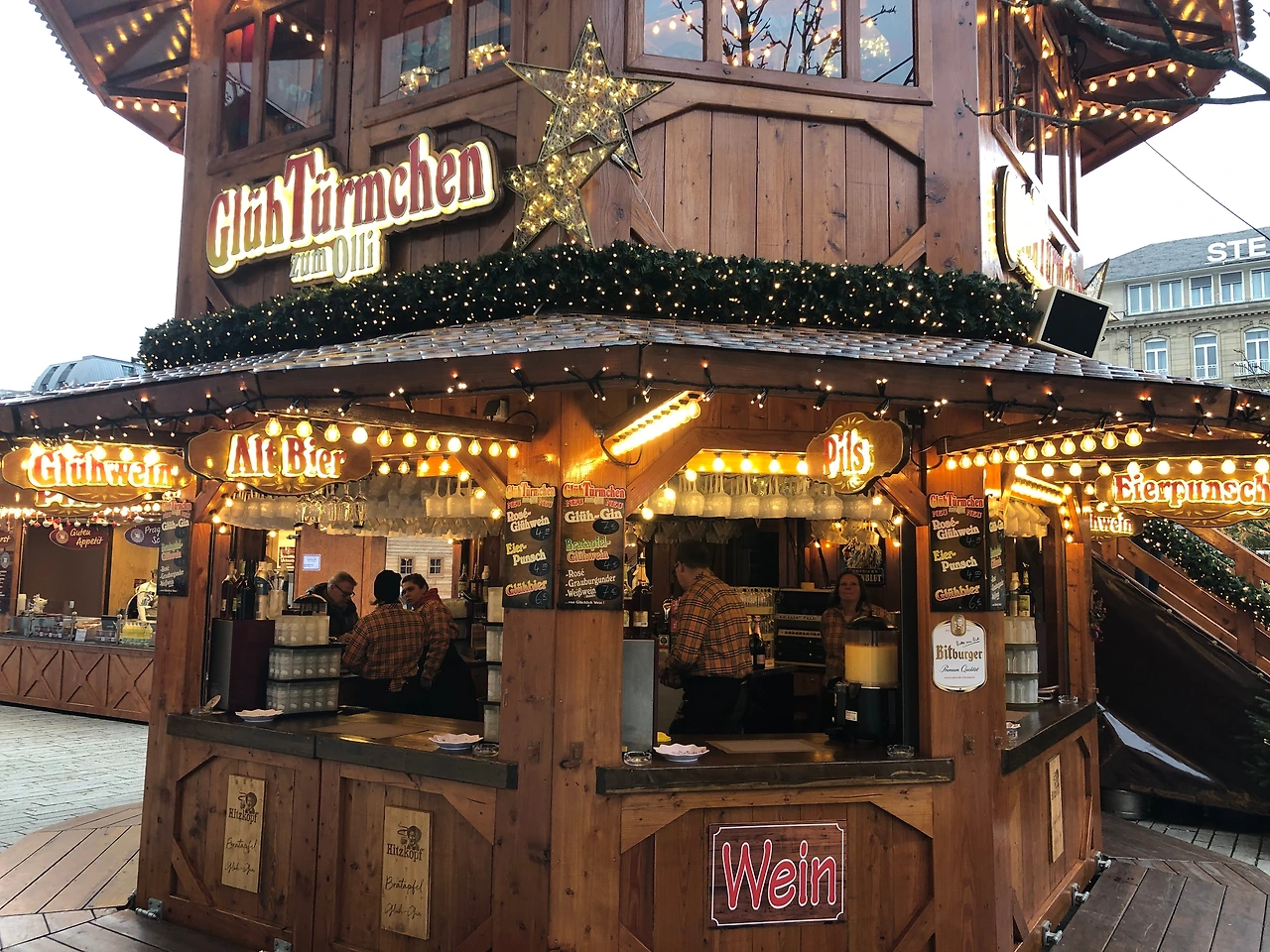 글뤼바인을 파는 점포는 1미터에 한 개씩 있기에 한 곳에서 여러 잔을 마시기보다 여기저기 방앗간을 옮겨 가며 마시면 재미가 배가된다. 귀찮게 왜 자리를 옮겨가나 하겠지만 사실 한 자리에 오래 서서 마시면 금세 추워지기도 하거니와 점포를 바꾸면 머그컵의 모양이 바뀌면서 분위기도 바뀌고 글뤼바인의 맛도 다르게 느껴진다. 예전에 도서관에서 빈자리가 없을 때 오래 자리를 비운 사람들의 자리에 몰래 앉아 공부하는 것을 메뚜기 뛴다고 했었는데 (지금도 이런 말을 쓰려나) 크리스마스 마켓에서도 메뚜기를 뛰면 수작을 더 열렬히 즐길 수 있다. 베가본드 (vagabond) 형 음주라고나 할까?