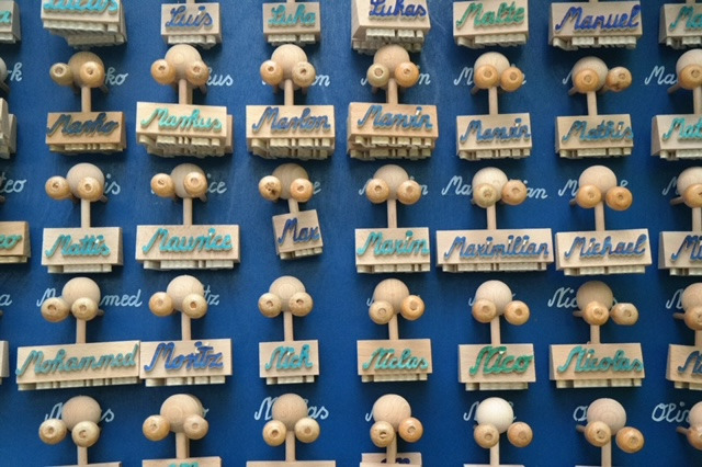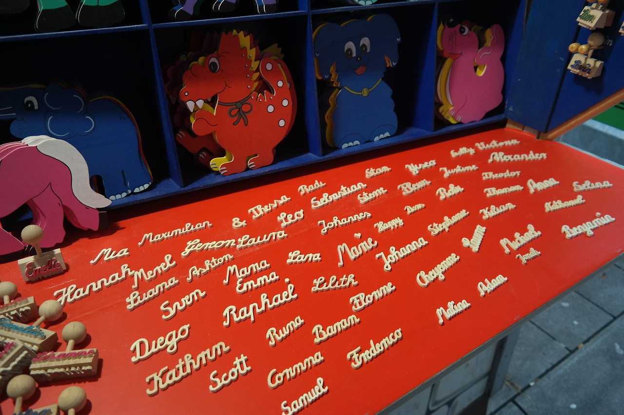 디지털 세대의 도래로 3살 어린이들까지 핸드폰과 아이패드, 태블릿 등의 전자기기를 가지고 노는 작금에 크리스마스 마켓의 전통적 장난감에 누가 관심이 있으랴 걱정했는데 다행히 나의 걱정은 기우인 것 같다. 아이의 이름을 세기고 있는 부모들, 기다리고 있는 사람들로 점포는 북적인다. 아이와 함께 온 부모들에게 물걸레와 매직스펀지로 연말을 보내고 싶지 않다면 이름 도장을 조심하라 조언하고 싶었으나 참았다. 우리 집 애들과 달리 아무 데나 도장 찍지 않는 착한 아이를 키우고 있을지도 모르고 애 키우는 맛을 찰지게 느껴 보는 것도 나쁘지 않다!?!