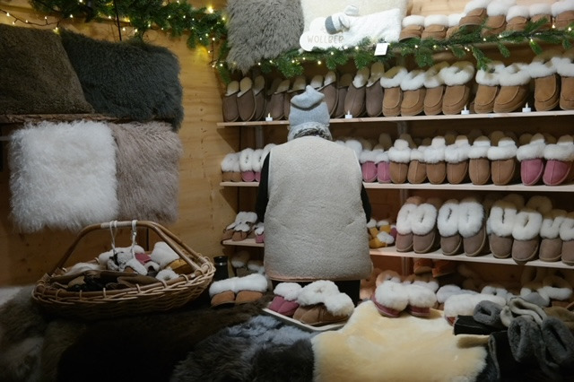 빼놓을 수 없는 수공예 제품으로 양털제품과 가죽제품을 들 수 있다. 가죽 장갑, 가방, 지갑 등은 크리스마스 선물로도 인기가 높아서 많은 사람들이 구매한다. 부드럽고 따뜻한 양털 담요나 쿠션은 겨울철에 따뜻함과 아늑함을 주는 홈데코레이션으로도 많이 활용되고, 양털로 만든 작은 장식품이나 인형들은 크리스마스 트리에 걸기도 한다. 그 외에도 양털 스웨터, 모자, 장갑, 신발에서 양탄자까지 고풍스럽고 따뜻한 분위기를 연출하기 위해 많이들 사는데 크리스마스 마켓에서 이 물건들을 사는 것이 특별한 점은 제품들이 손수 제작되는 과정을 볼 수 있다는 것이다. 내가 점포에 들렀을 때 장인은 팔기 바빠서 만드는 과정을 보여줄 시간조차 없었는데 장인의 작업장을 보니 그림형제의 동화 "구두장이와 요정들 (룸펠슈틸츠헨)"이 생각나서 마음이 따뜻해졌다.