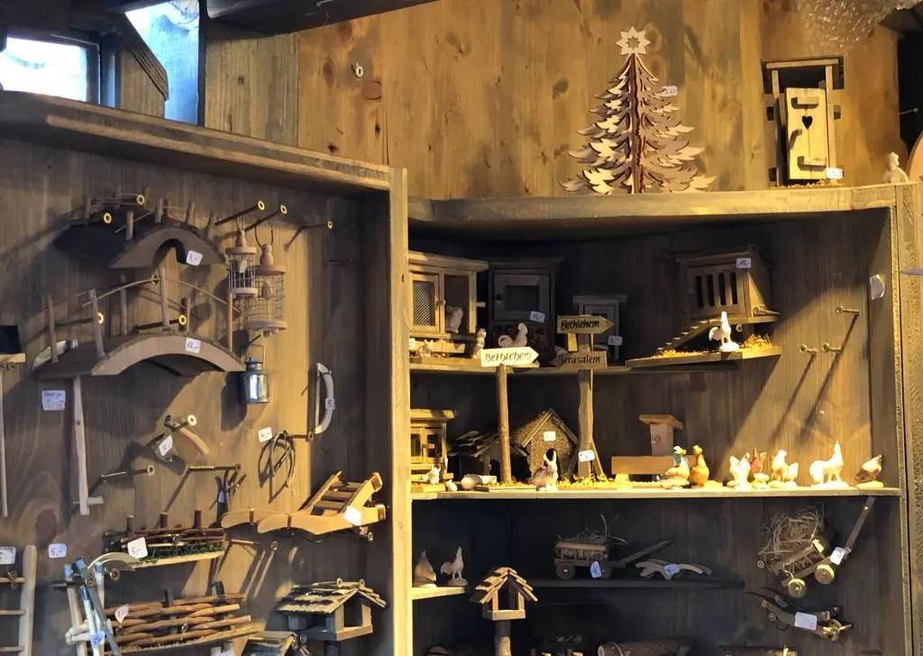 미니어처 크리스마스 마을은 독일 크리스마스 마켓의 전유물은 아니지만 이 점포를 구경하는 것은 정말 커다란 재미이다. 무엇을 만들든 품질을 중요하게 생각하는 독일은 고품질 제품 탄생을 위해 아낌없이 비용을 투자하는 것으로 유명하다. 두 차례의 세계 대전과 기근, 초인플레이션을 겪은 독일인들은 제조업의 발전과 견습생 양성에 목숨을 걸었는데 특히 제조업체를 보호하기 위해 경제를 구조화했다. 즉 장인 정신을 가다듬고 전수하기 위한 학교 시스템을 구성했고 우리나라처럼 제조업자들이 원하는 것은 무엇이든 수입할 수 있도록 허용하지 않고 자국의 제조업을 고도로 전문화시키기 위해 노력했다. 그러다 보니 팝스타가 영웅인 한국과는 다르게 독일에서는 장인이 영웅이다. 기계공, 용접공, 목수 등이 대접받는 사회이고 그들이 만들어내는 이러한 문화가 칭송받고 대접받는다 (어떤 문화가 좋고 나쁘다는 이야기가 아닌 '다르다'는 이야기다). 작은 강아지 인형을 사도 발바닥까지 색칠되어 있는 것은 독일 제품밖에 없다는 이야기가 있어 사실일까 궁금해 강아지 인형을 들어 올려 깜짝 놀랐다. 정말로 발바닥까지 깔끔하게 칠해져 마무리되어 있었다!