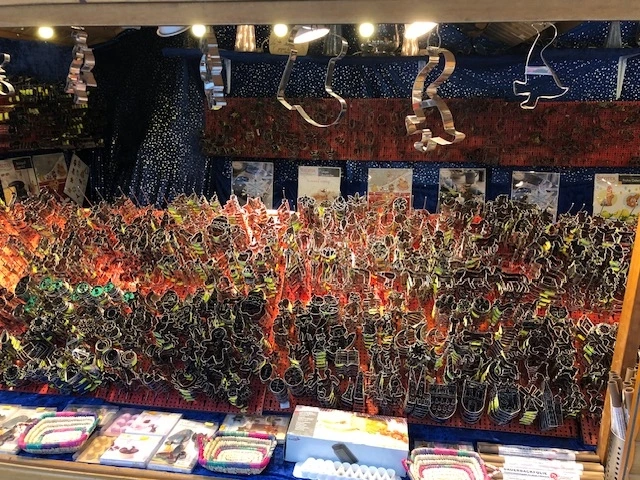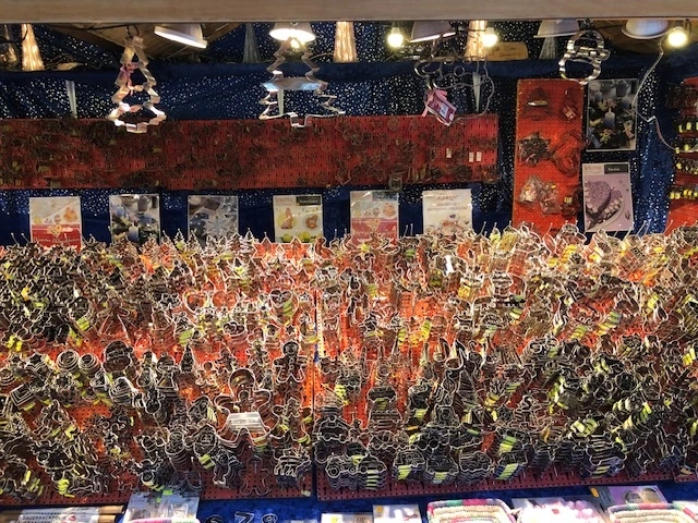비록 직접 만들어지는 모습은 볼 수 없지만 이 많은 종류의 쿠키커터를 한꺼번에 볼 수 있는 곳은 단언컨대 크리스마스 마켓밖에 없다. 작은 점포가 수백 가지의 쿠키커터로 가득 차 있는데 마치 마법의 나라에 온 듯한 분위기를 자아낸다. 크리스마스트리, 천사, 선물상자, 눈사람, 별 모양부터 시작해서 숫자에 알파벳에 갖가지 혁신적인 모양의 디자인까지... 대부분의 고객들은 과자 굽는 것을 좋아하는 사람이겠고 아마도 집에 이미 수십 가지 쿠키커터를 가지고 있으리라 짐작된다.