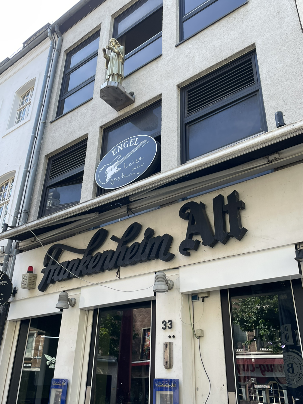 조금 더 걸으니 더 재미있는 풍경이 눈에 띈다. 호프집 바로 위 천사상! 매일 지나다니던 길에 있는 브루어리 하우스인데 고개를 살짝 들어 위층을 보니 자비롭게 팔을 들어 올린 천사가 매달려 있다. 마치 교회나 성당의 벽에 달려 있어야 할 것 같은 성스러운 모습으로. 1층에서는 주님을 영접하고, 더 높은 곳에 천사가 있다 뭐 이런 메시지인가? 브루어리 하우스와 천사 간의 관계는 잘 모르겠지만 이렇게 함께 아래위로 친근하게 함께 있을 업종은 아닌 것 같아 피식 웃음이 나왔다.