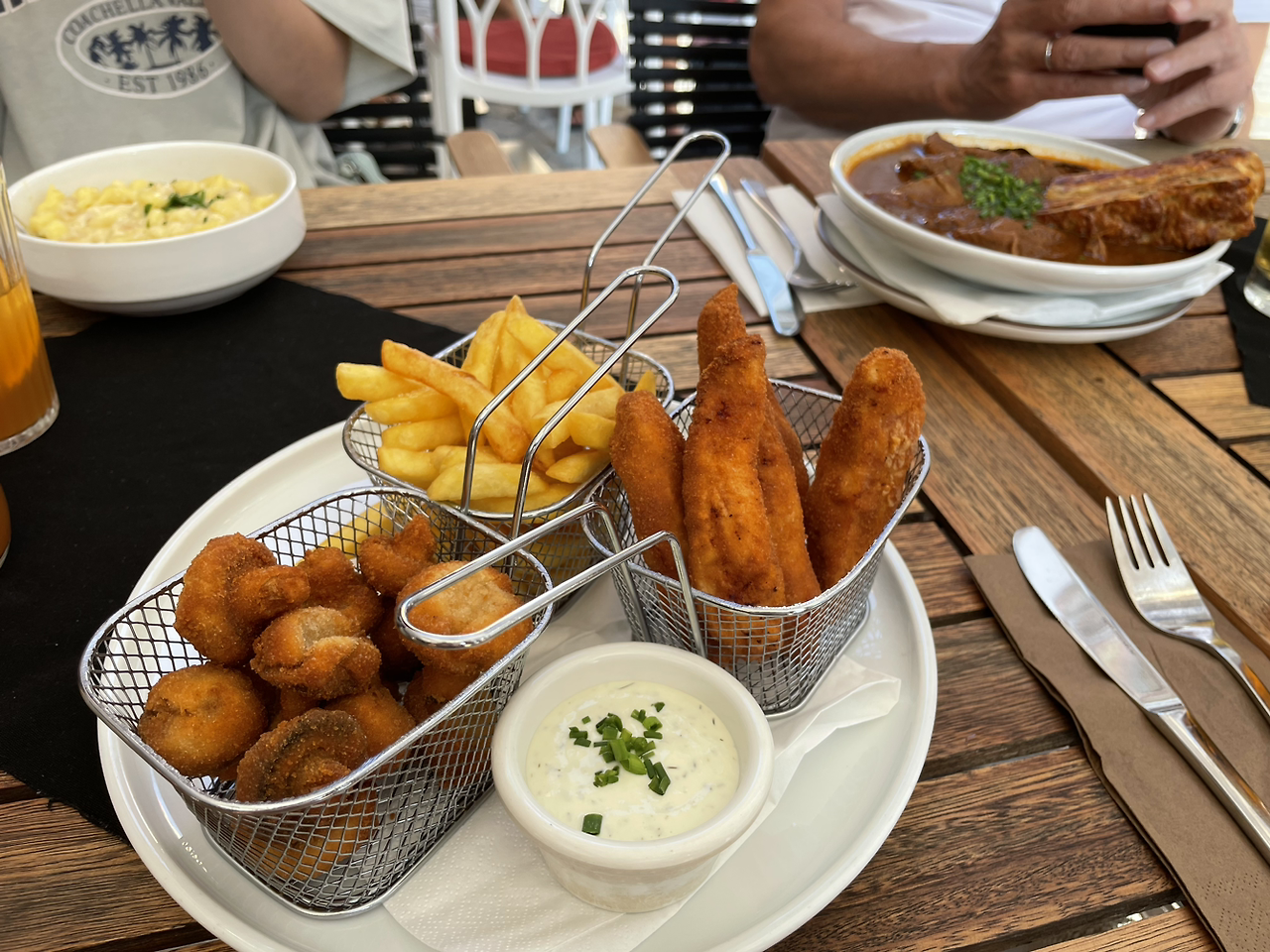 아침만 먹고 온지라 도착하자마자 레스토랑을 찾았다. 호텔에서 코너를 돌자마자 구시가지가 펼쳐지며 레스토랑이 즐비해 있었는데 너무 허기져서 더 이상 알아보며 진군할 수가 없었다. 애라 모르겠다 , 몇 군데 둘러보는 척하다가 한 맥주집에 착석했다.