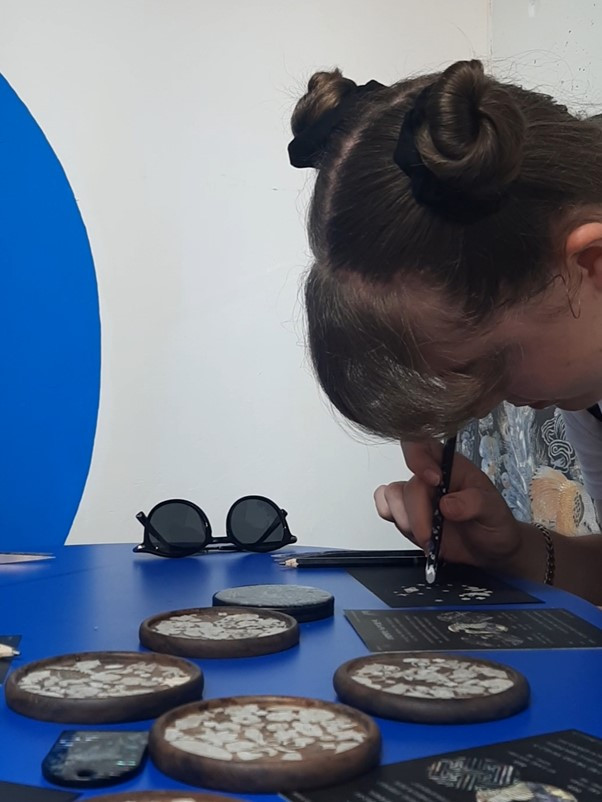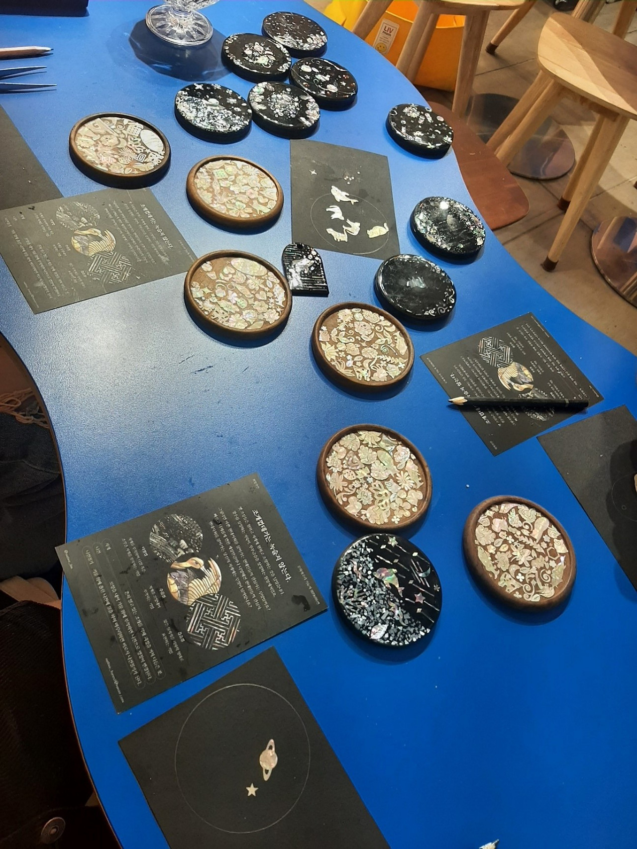 노에미는 박물관에서 제공하는 워크숍에 참여해, 직접 나전칠기를 체험해보는 기회를 가졌다. “작은 손거울을 만드는 작업이었는데, 조개껍데기를 자르고 붙이는 과정이 생각보다 어려웠어요. 저는 토끼와 밤하늘을 디자인했는데, 작은 거울 하나 만드는데도 한 시간 넘게 걸렸습니다. 전통 장인들이 이런 섬세한 작업을 얼마나 정성스럽게 했을지 상상하면 경이로울 따름이에요.”