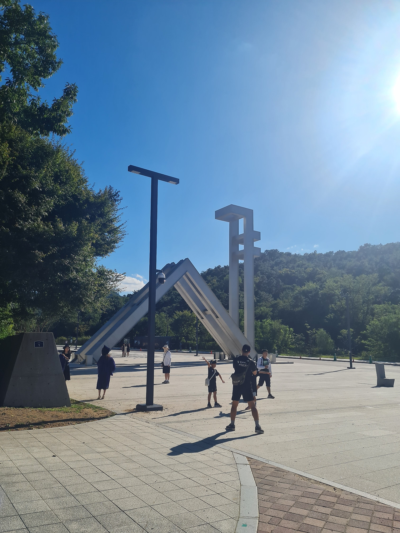 조금 더 낯설었던 것은 그 시기의 정치적 상황이었습니다. 늦여름 무렵, 불편한 마음으로 탱크와 대포가 군사 퍼레이드에서 도로를 달리고, 여러 비행체가 하늘에 무지개를 그리는 모습을 지켜보았습니다. 독일 군대와는 거의 접점이 없었고, 무기나 군사와 관련된 것에 대해 긍정적인 이미지를 가져본 적이 없었기 때문에 이 상황이 매우 불편했습니다. 서울역 근처에서 수많은 인파가 군인들의 행진을 지켜보고 있었는데, 한국에서는 거의 모든 사람이 병역의무로 인해 군인 지인이 있기 때문인지, 아마 자부심도 느꼈을 것 같습니다. 그러한 상황이 신기하게 느껴졌습니다.