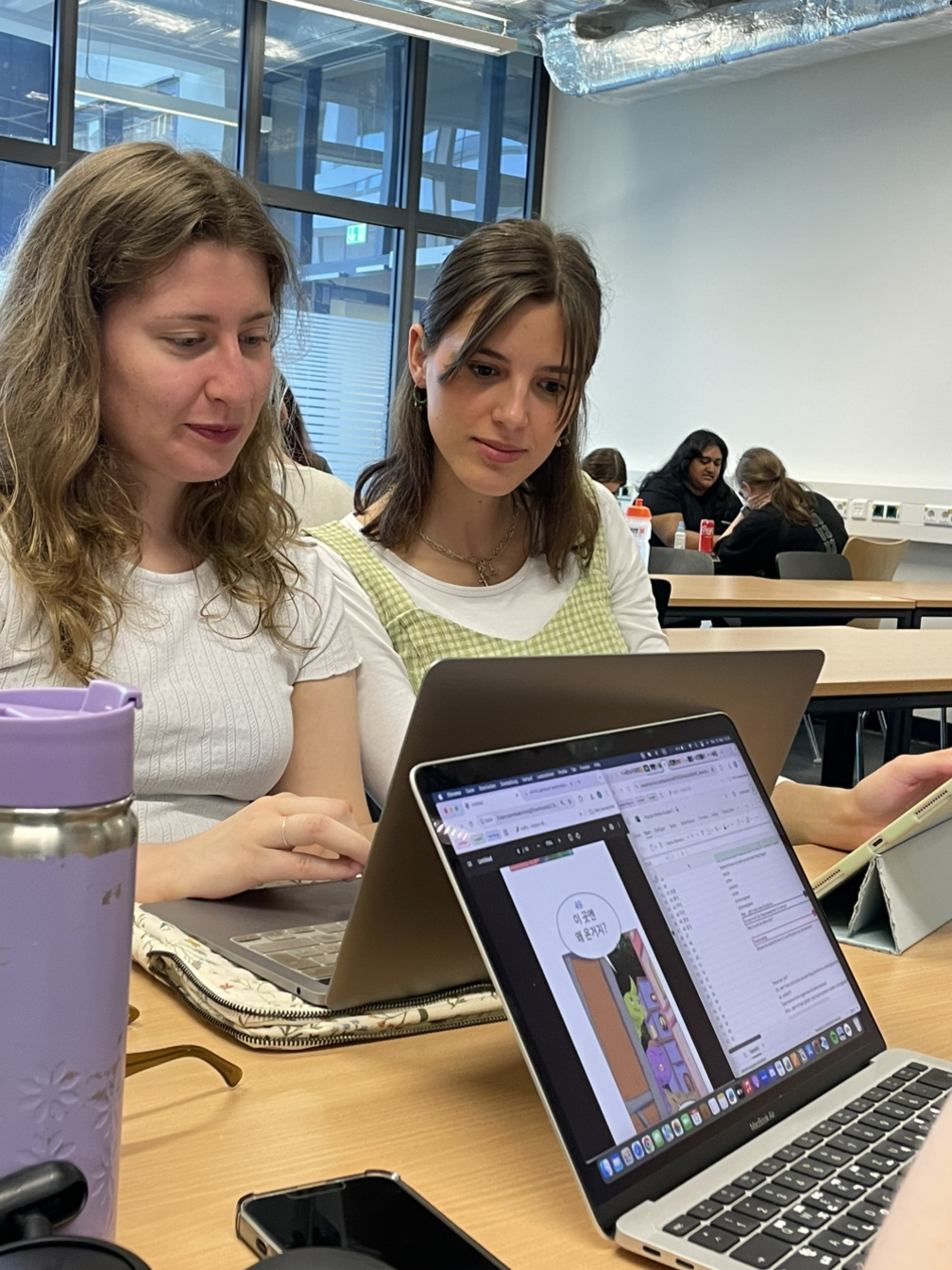 웹툰 번역은 개인 작업이 아닌 팀번역으로 이루어졌다. 3명에서 5명까지 팀을 이루어 역할을 분담하고, 의견을 나누며, 수차례 수정과 검토를 거쳤다. 어떤 팀은 매 수업마다 낭독과 피드백을 반복했고, 어떤 팀은 음성 녹음을 통해 자연스러운 리듬을 찾았다. 심지어 말풍선의 시각적 균형을 고려해 단어 수를 제한하거나 줄임표의 개수까지 토론한 사례도 있었다.