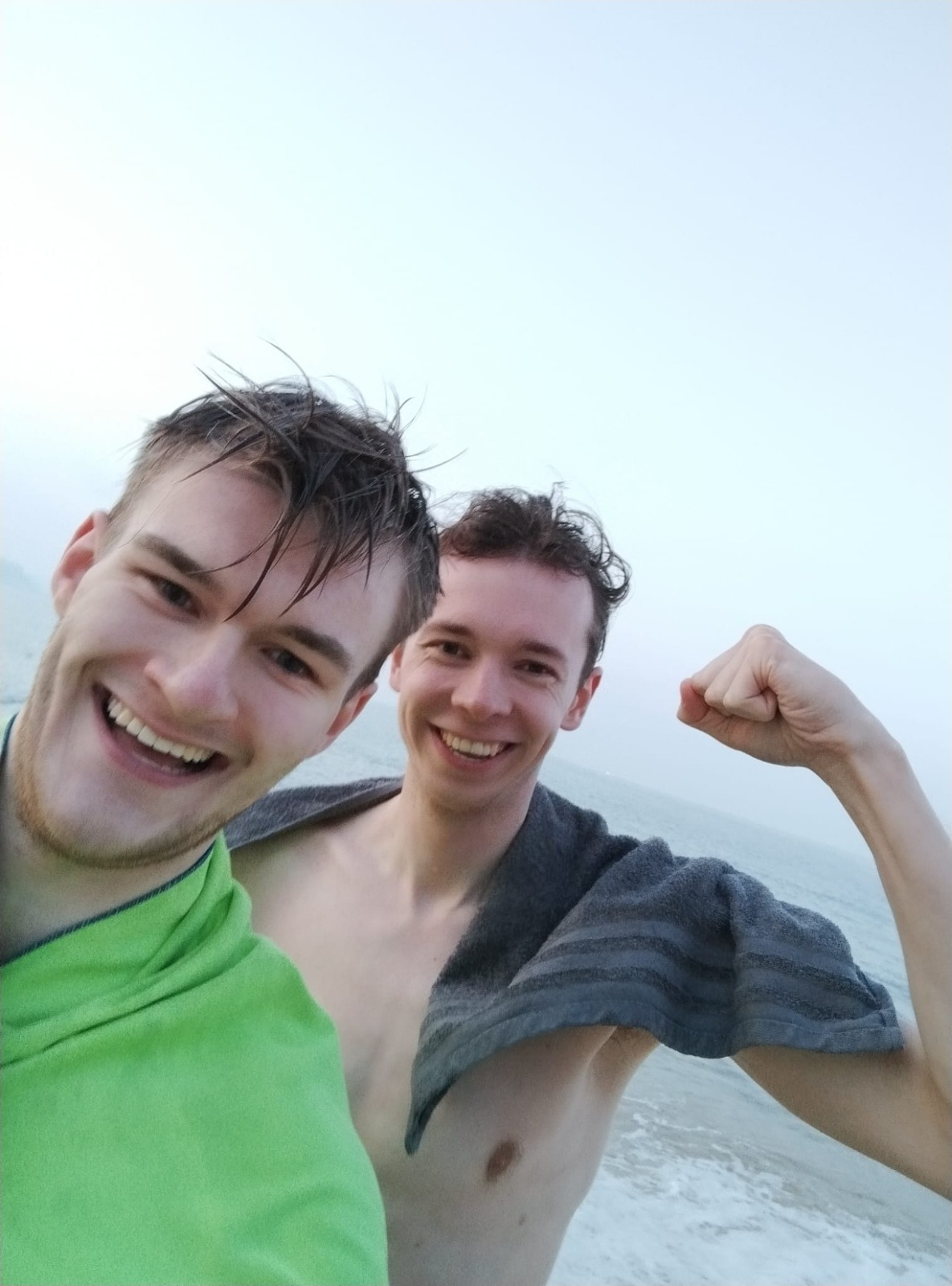 겨울 학기 후, 날씨가 풀리자 두 학생은 부산 바다로 향했다. 아무도 물에 들어가지 않았지만 이 둘은 과감히 뛰어들었다.