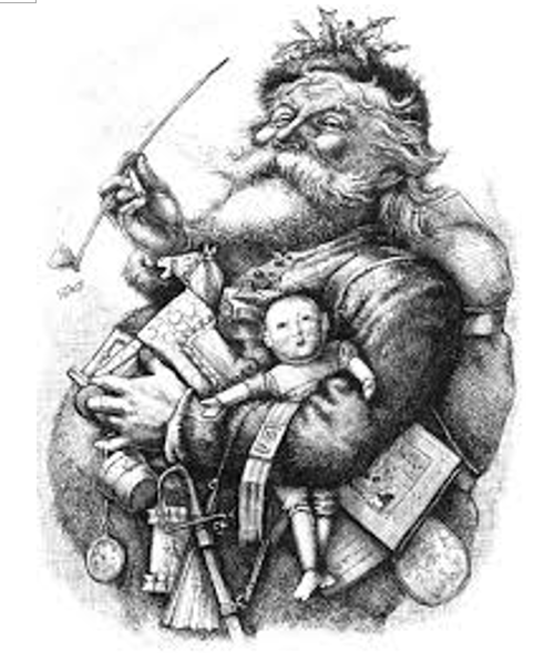 오늘날의 산타의 이미지는 미국 역사상 가장 강력하고 영향력 있는 독일 출신 정치 만화가인 토마스 나스트에 의해 탄생되었다. 많은 사람들이 문맹이던 1860년대 만화는 글을 읽지 못하는 이들에게 시사 논평을 전달하는 매체였다. 이전의 성 니콜라우스는 일반적으로 키가 크고 마른 사람으로 묘사되었었는데 아내가 읽어준 1822년의 시 ‘성 니콜라우스의 방문 (A Visit From St. Nocholas)’을 듣고 그 설명을 바탕으로 네스트는 여덟 마리의 순록이 끄는 썰매를 타고 등장하여 크리스마스이브에 사람들에게 선물을 주러 다니는 둥글둥글하고 유쾌한 산타 클로스의 이미지를 탄생시켰다.