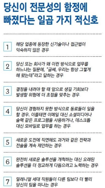 전문성의 함정에 빠진 경영진은 자신이 가장 전문가라고 생각한다. 이들은 자기가 선택한 방식이 가장 효과적이라고 생각하기 때문에, 회사의 룰에 대적하는 것처럼 보이는 구성원들의 제안에 보수적이다. 사업 초기에는 대개 경영진의 업무방법론이 스탠다드가 된다. 하지만 조직이 커질수록 협업 방식은 달라지고, 실무진의 의견이 더 중요한데 말이다.