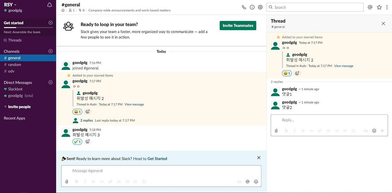 : 슬랙에서는 게시물(글타래)을 올리는 방식이 아니라 메시지를 주고받는 형식이라 휘발성이 매우매우 강하다. 플로우는 게시물을 올리는 방식이어서 휘발성이 덜한 편이다.