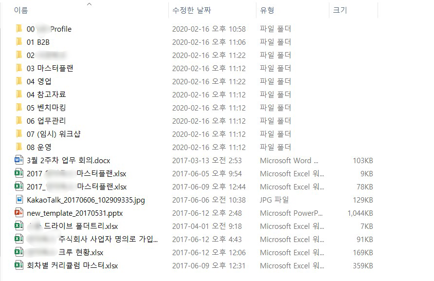 나는 기본적으로 이런 구조로 회사의 폴더를 정리했다.
