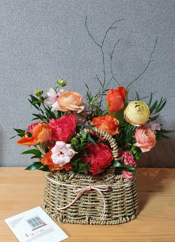 * 발렌타인데이를 맞아 아내에게 드린 꽃 바구니입니다. (feat. 손편지)