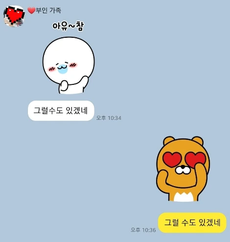 대화가 어떻게 끝난 건지 잘 기억은 나지 않지만 서로의 마음은 개운(?)하게 마무리되었습니다. 그리고 잠시 후에 아내가 보내준 카톡에는.. '그럴 수도 있겠네'라고 쓰여 있더군요.