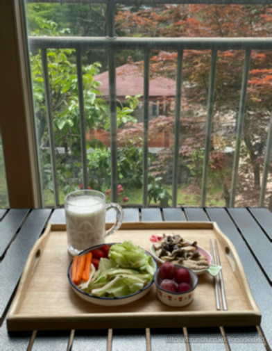 마음껏 여유를 음미하는 요즘, 거의 매일 집에서 식사를 하고 있어요. 그러다 보니 새로운 습관이 생겼어요. 당근, 오이, 파프리카 같이 생으로 먹을 수 있는 채소들을 사서 손질해 둔 뒤 끼니때마다 챙겨 먹기 시작했어요. 어떤 음식을 먹느냐가 몸 건강뿐 아니라 정신 건강에도 영향을 준다고 하더라고요. 그동안 바쁘다는 핑계로 빨리 조리해서 빨리 섭취할 수 있는 음식 위주로 먹었던 게 마음도 조급하게 만든 것 같아서 조금씩 바꿔나가보려 해요. 덕분에 30년 넘게 싫어하던 당근을 좋아하게 되었어요! 당근에게 이런 향긋함이 있다는 걸 이제 알았다니. 그리고 채소를 고르고 씻고 손질해서 챙겨 먹는 행위 자체가 너무 좋아요. 내가 나를 챙겨주는 게 마치 다른 사람이 나를 챙겨주는 것처럼 마음이 충만해지더라고요. 막상 해보면 참 별거 아닌데 그동안은 왜 바쁘고 귀찮다는 핑계로 시도도 안 해봤을까 싶어요.