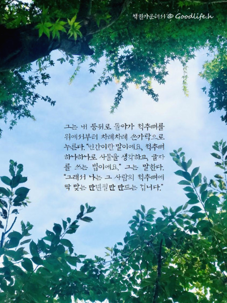 “인간이란 말이에요, 척추뼈 하나하나로 사물을 생각하고, 글자를 쓰는 법이에요.”