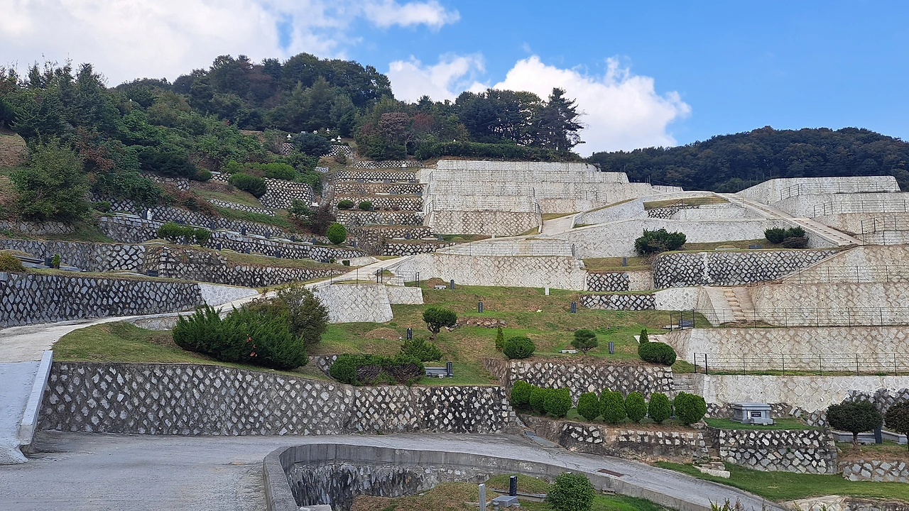 차로 산소입구 위치로 내려오면서, 산소가 정리된 곳도 많았습니다. 산소가 없고 편편하게 된 돗이죠. 계약기간이 지나서 당사자들과 협의를 통해 파묘를 하여 다른 곳으로 이장한 경우라고 파악하였습니다. 마침 조부모님 경우도 곧 계약만기라고 아버지께서 말씀하셨고, 연장(산소 유지)에 대해 그곳 관리사무실에 칮아가 문의를 하였습니다.