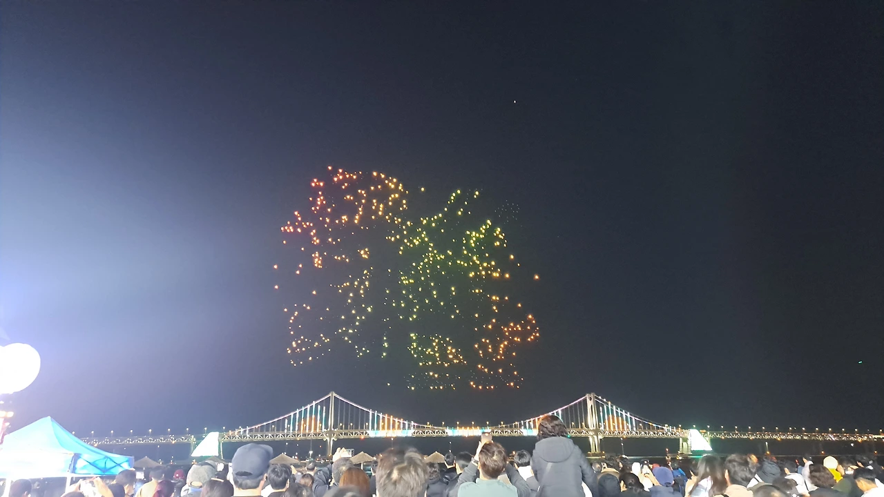 저녁 6시 넘어서 버스 아닌 지하철로 광안리 이동하였습니다. '드론쇼' 보기 위해.. 지하철에 내려 10분 정도 도보로 이동하였는데 사람들이 진짜 많더군요. 드론쇼를 보면서 수백 개 드론을 어떻게 조종가능할지? 생각하면서 감상하였습니다.(공연은 10분 정도)