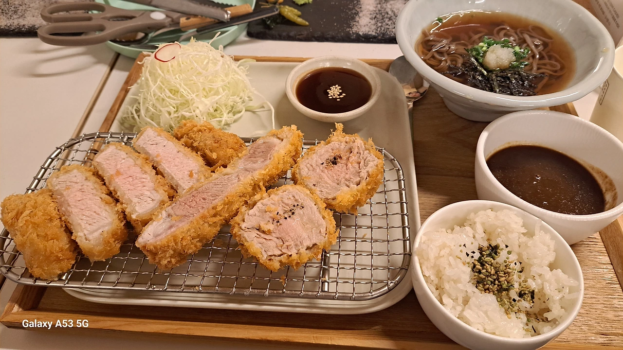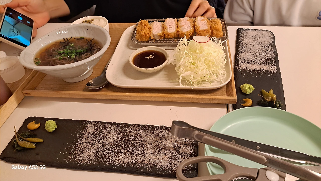 저녁은 돈가스집으로 정했습니다. 개인적으로 상호가 독특하더군요. 수수하지만 굉장해'.. 간식 먹을 것도 고려하여 3개를 주문하였습니다.