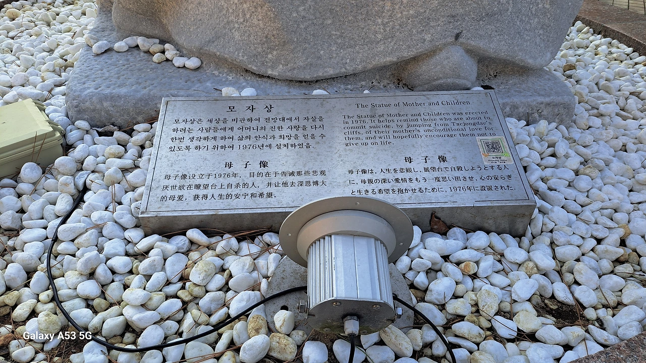 전망대에 내렸는데, 한 동상이 있더군요. 엄마가 두 아이를 안고 있는 모습였습니다. 아래 동상에 대한 설명을 읽어보니, 자살 방지라는..... 바다뷰가 보이는 곳인데 자살기도하는 사람들이 많았다고 합니다. 그 동상을 보면서 긍정적인 생각을 하라는 의미였죠.