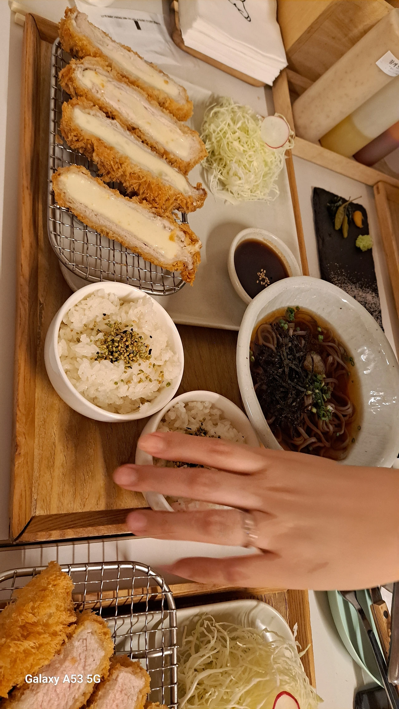 메뉴 주문 후, 널찍한 그릇에 솔트를 흩뿌리고 냉이나물, 겨자, 고추가 나오는데 뭔가 있어 보였습니다. ' 맛은 정말 좋더군요. 특히 돈가스와 같이 나오는 카츠라 좋았습니다.