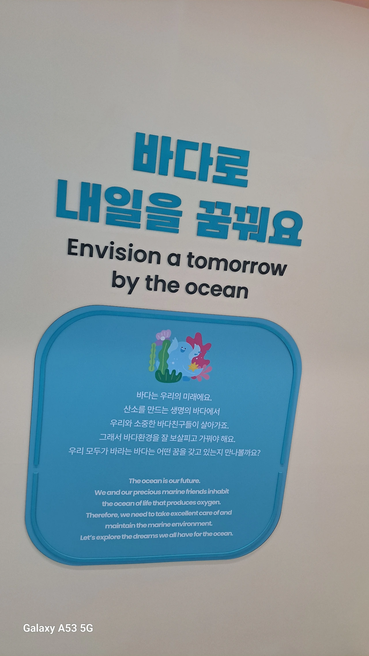 버스에서 내리고, 현장 분위기는 공원였습니다. 연구소 등 건물도 많았고요. 지난 1월 울진여행 시에도 해양박물관을 다녀왔는데, 특히 부산해양박물관은 수조관이 압권였습니다. 63 빌딩 아쿠아리움보다는 규모는 작지만, 큰 가오리, 상어, 화려한 색의 물고기들이 눈길을 끌더군요.