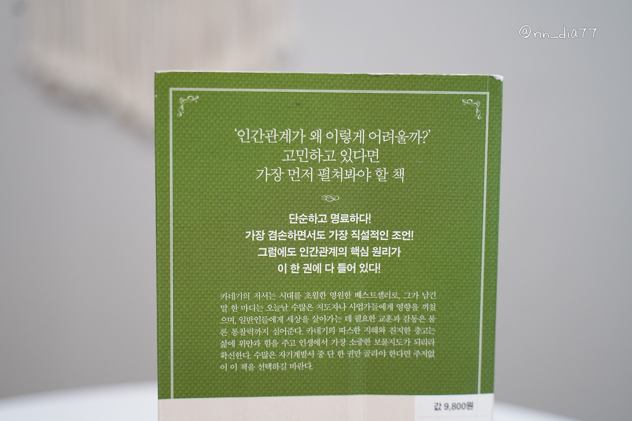 사실 이 책을 약 17년 전에 처음 만났었는데, 당시에 큰 감동을 받아서 열심히 줄 그어가며 읽었던 기억이 나요. (아직도 책을 가지고 있답니다.) 누구나 인간관계는 인생 최대의 고민거리이자 숙제인 거 같아요. 저도 하나씩 배워가며 조금씩 나아지고는 있지만 여전히 많은 노력이 필요하네요.