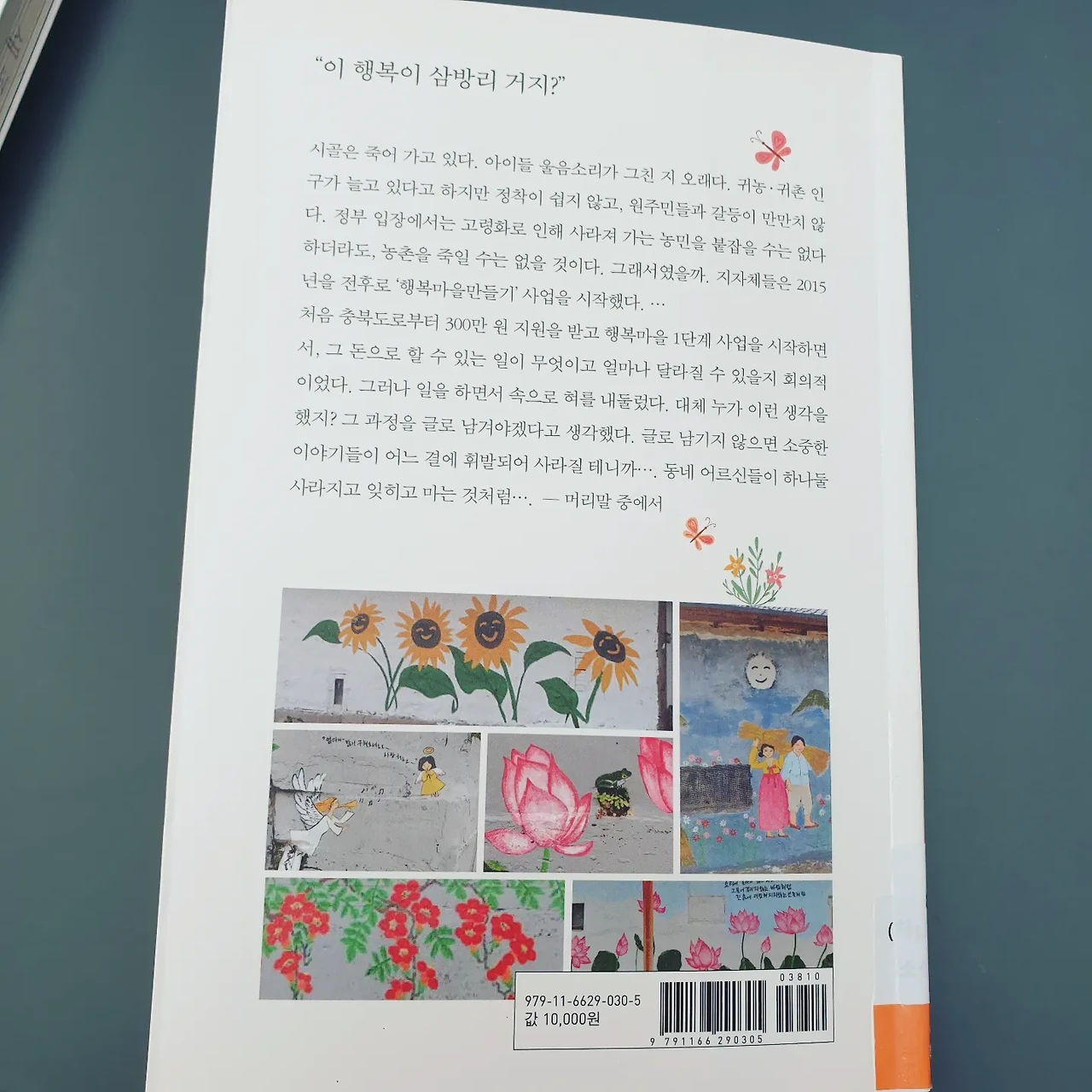 귀농 귀촌 인구가 늘고 있다고는 하지만 시골이 죽어가고 있는 현실, 농촌을 살리기 위해 2015년을 전후로 '행복마을 만들기'사업을 시작하게 되었다고 해요. 옥천군 청산면 삼방리 주민들이 이 사업에 참여하게 되면서 벌어지는 많은 사연들을 책에 담으셨어요. 추운 마음에 히터를 틀어주는 듯한 따스함 가득한 사연들에 저절로 미소 짓게 되고요, 인생에 억울함이 많았던 할머니들의 아픔을 보듬어 주고 오히려 베푸는 삶으로 나갈 수 있도록 도와주는 작가님의 따스함과 지혜에 감동받았어요. 언젠가 한 번은 꼭 만나보고 싶은 분.