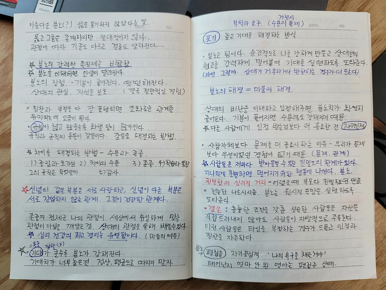 독서모임에서 이 책으로 토론했는데, 각자 분노했던 경험담을 나누다 보니 격하게 공감할 수 있어서 좋았어요. 분노의 감정은 누구에게나 해당되는 것이고 동시에 누구나 고민하는 주제이기에 많은 공감을 일으키는듯해요. 아울러 관계에 대한 조언도 들어볼 수 있는데요.